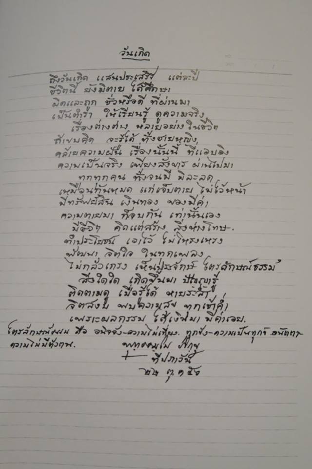"ถึงวันเกิด แสนประเสริฐ แต่ละปี ชีวิตนี้ ยังมิตาย ได้ศึกษา