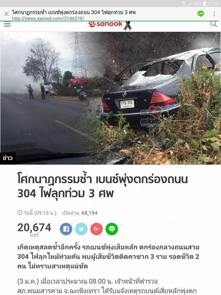 วานซืนตื่นใจจากข่าวรถตู้ที่ข้ามเลนมาประสานกับรถกะบะ