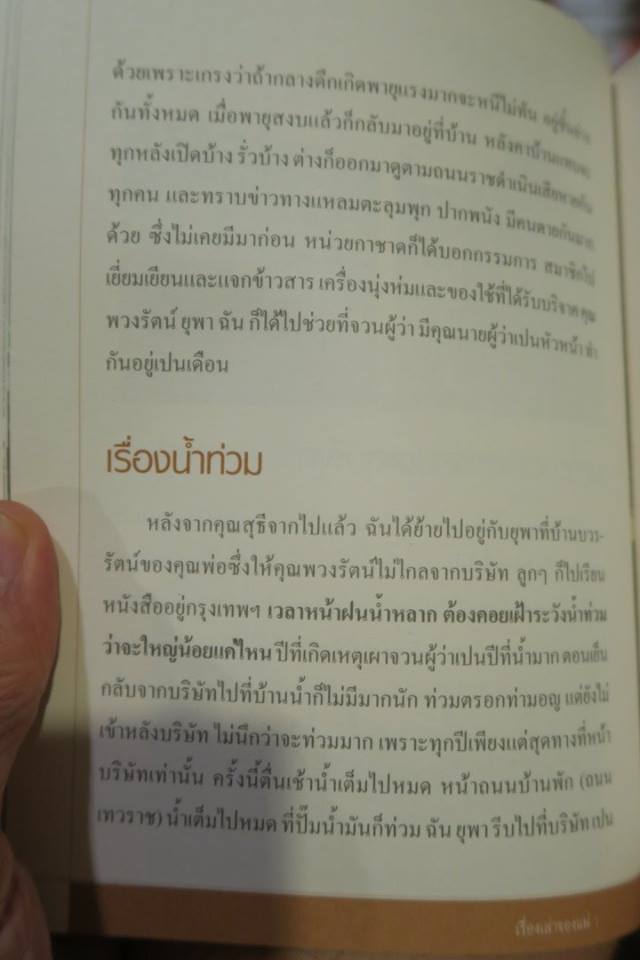 จำได้ว่าแม่เขียนไว้ไม่น้อยถึงน้ำท่วมใน "เรื่องเล่าของแม่" แถมเมื่อตอนปีใหม่ได้อ่านบันทึกเมื่อตอนบวช พบจดหมายของ "โยมแม่" ที่เขียนส่ง "พระลูกชาย" ที่สวนโมกข์ ว่าได้ทำอย่างไรบ้าง