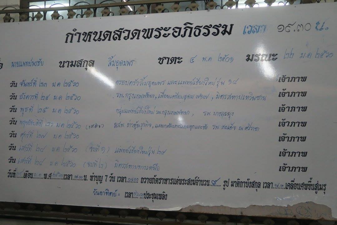 เมื่อวันงานแม่ผมที่วัดธาตุทอง ราว ๆ วันที่ ๑๐ กันยายนปีกลาย หน็อง หรือ "พรชัย ลิ้มอุดมพร" ได้ร่วมกับเพื่อน ๆ แพทย์เชียงใหม่รุ่น ๑๘ ไปเป็นเจ้าภาพงานแม่ แล้วหน็องก็บอกเพื่อน ๆ ว่า "กูเป็นมะเร็งตับอ่อนว่ะ" "เพิ่งได้รู้ อยู่ในระยะลุกลามแล้ว"