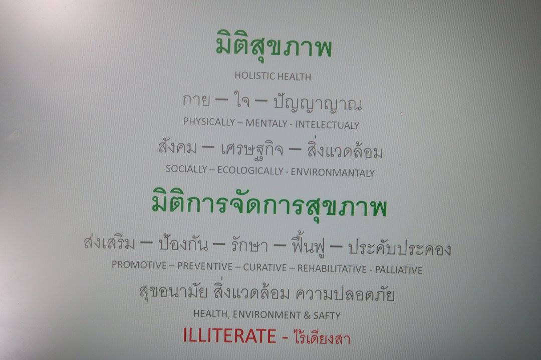 ผมยกมิติสุขภาพ และ มิติการจัดการสุขภาพมาประเดิม แล้วถามว่าทุกวันนี้ที่พวกเราทำ ๆ กันอยู่นั้นมันครบส่วนหรือไม่ ? ประชาชนผู้รับบริการ รวมทั้งพวกเราที่ทุ่มเทให้บริการนั้นทำกันส่วนไหน ?