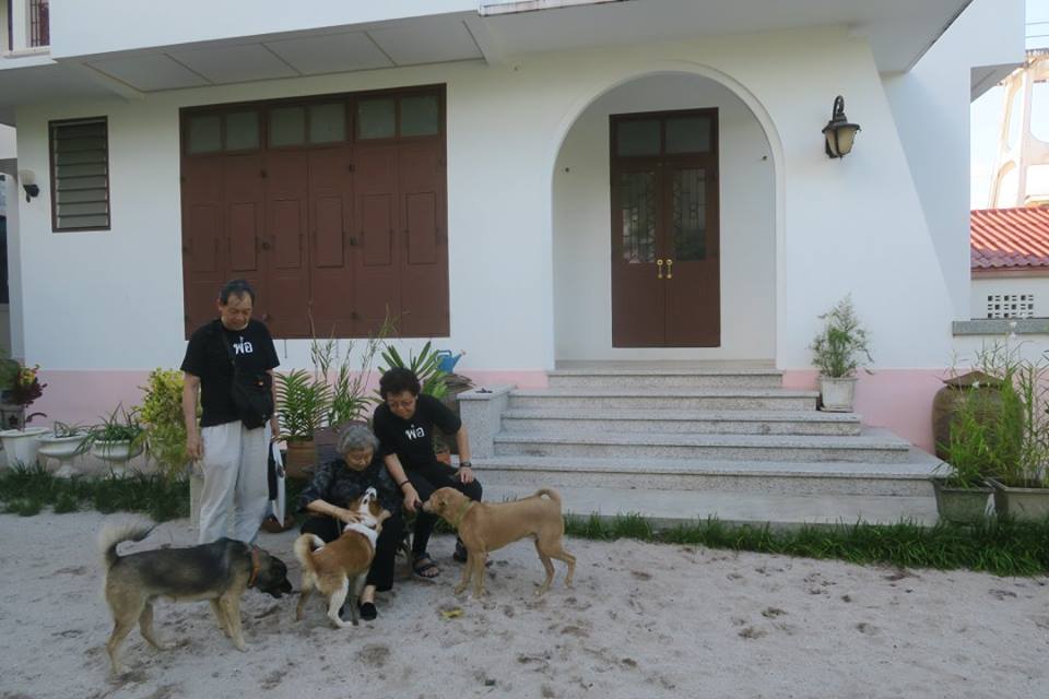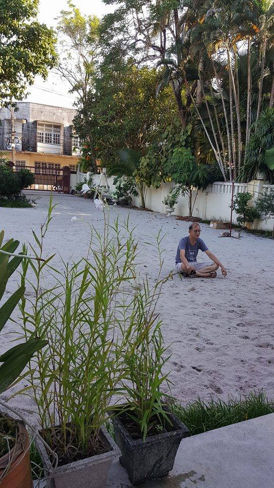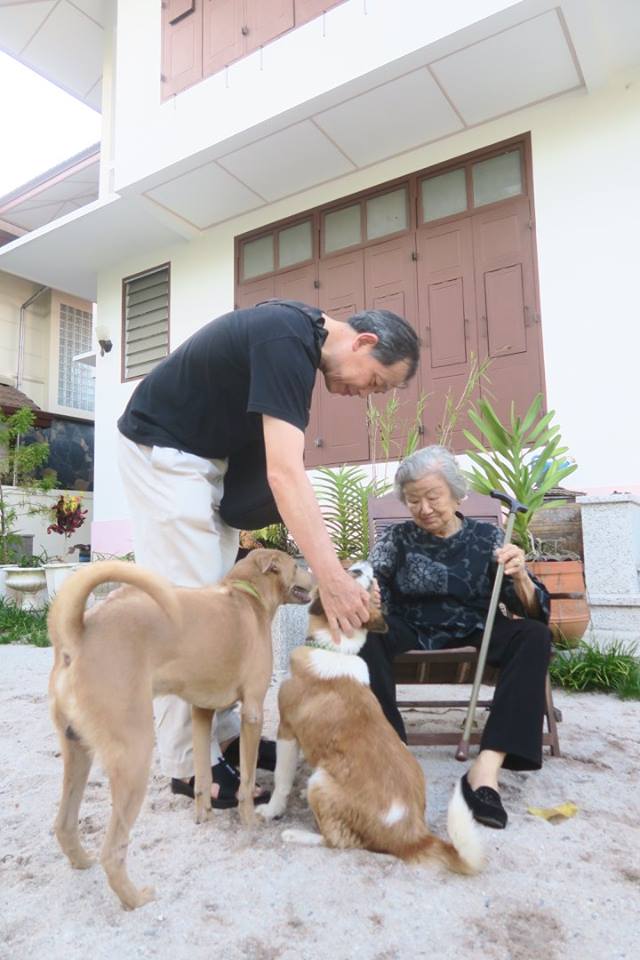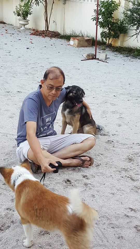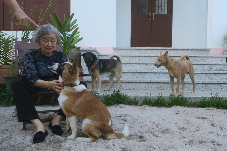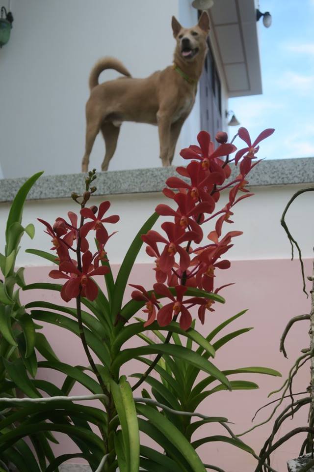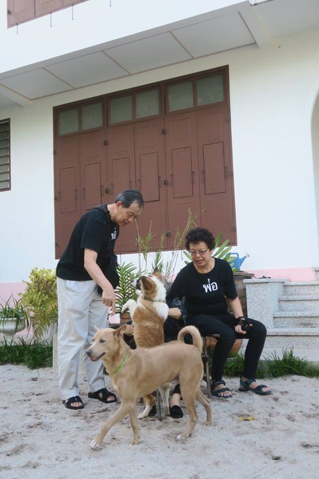 ผมเลยชวนนั่งเล่นกันที่ลานบ้านอย่างที่เคยในสมัยก่อนโน้น มี ๓ หมามาห้อมล้อมนัวเนีย ไม่แตกต่างจากเมื่อก่อนนั้น