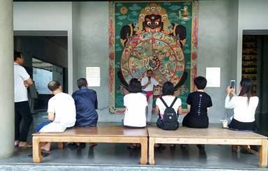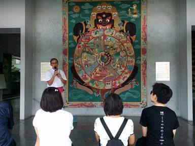 ดูหิน ๑๒ โมก ๘ ศาลา ๑ แล้วชวนดูภาพยายกะตาปลูกถั่วงา ก่อนที่จะมายาวกับภาพปฏิจจฯ จากนั้นจึงไปถามชีวิตที่ภาพพระเจ้าสร้างโลก ตบท้ายด้วยภาพอัตตภาพนาวา ลากันด้วยห้องนิพพานชิมลอง