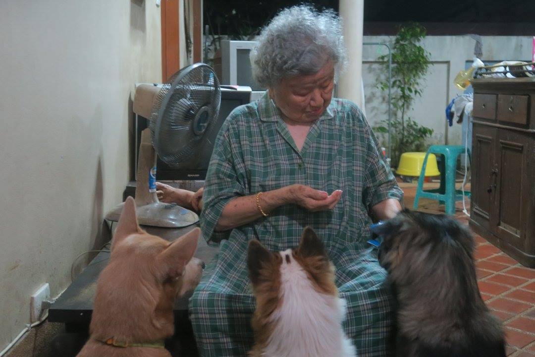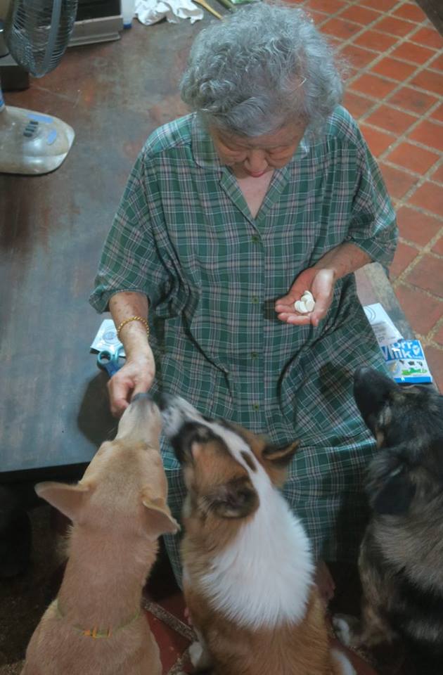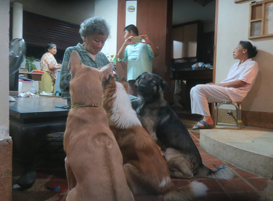 บริวารทั้ง ๓ ก็มานั่งเข้าแถวกินยาก่อนนอนกันอย่างนี้