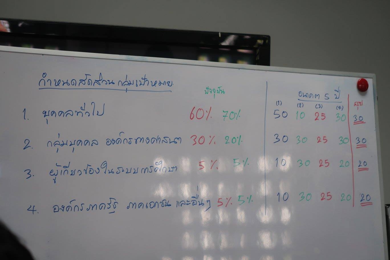 โดยมีพี่เล็กกับพี่ตาเป็นโต้โผ ก็สรุปได้อีกหลายประเด็นหลัก โดยเฉพาะกลุ่มเป้าหมายหลักพร้อมสัดส่วนของงานใน ๕ ปีข้างหน้า