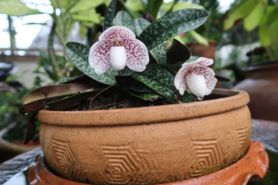 รองเท้านารีฝาหอยในหม้อประทับจากปีกเรือบินตกที่ปัตตานี