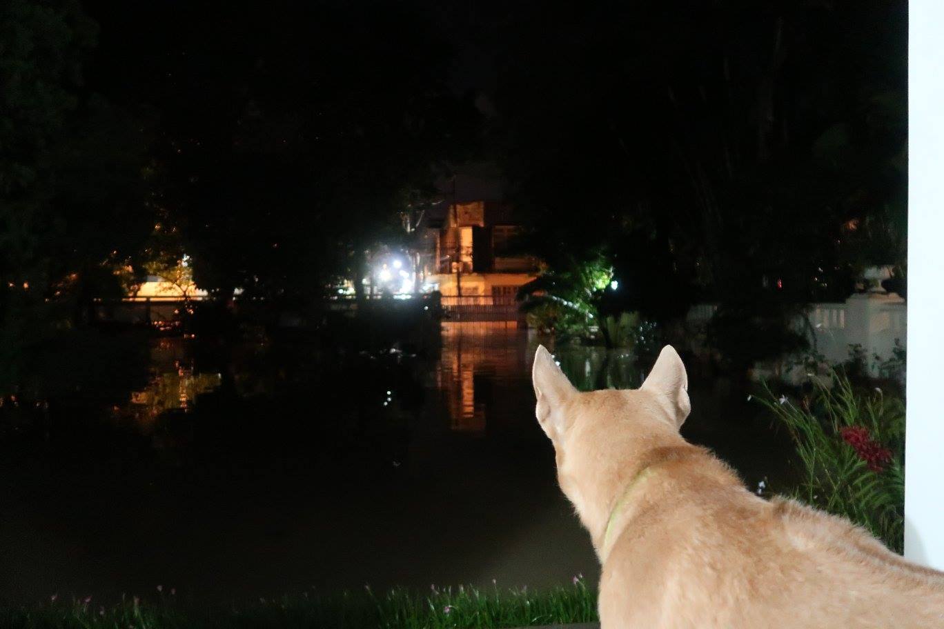 ตรงหน้าสนามบินที่น้ำมากเมื่อเที่ยงต่อบ่าย ตอนนี้ไม่มากแล้ว