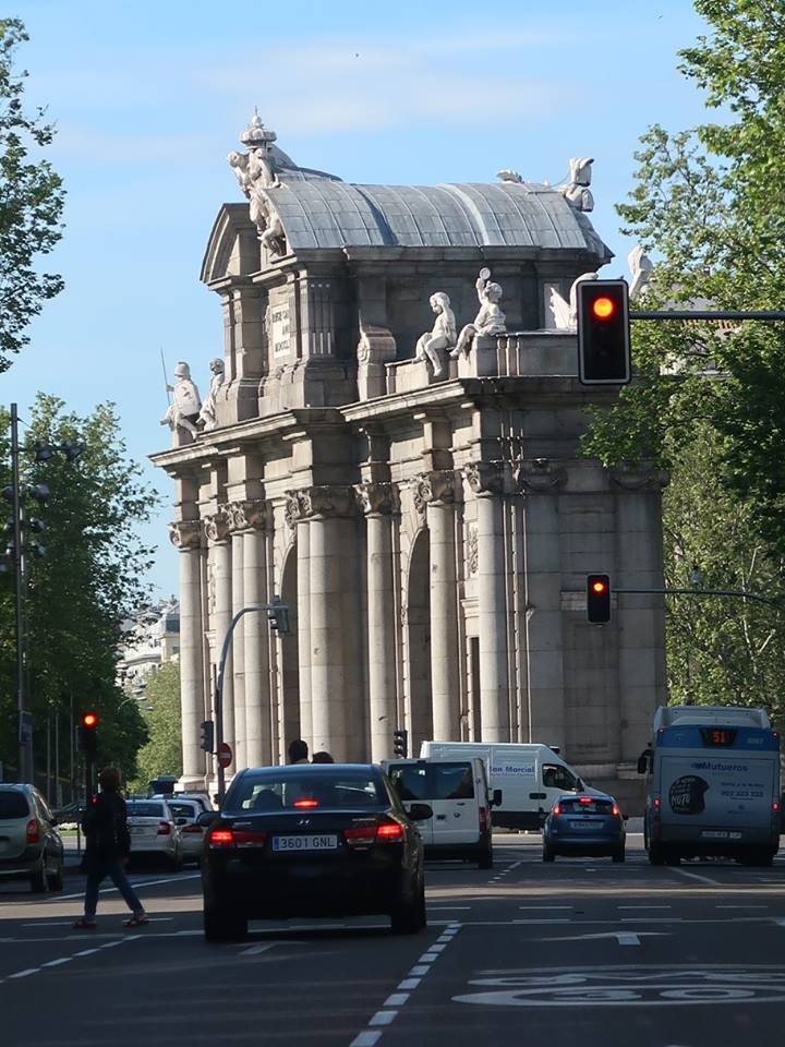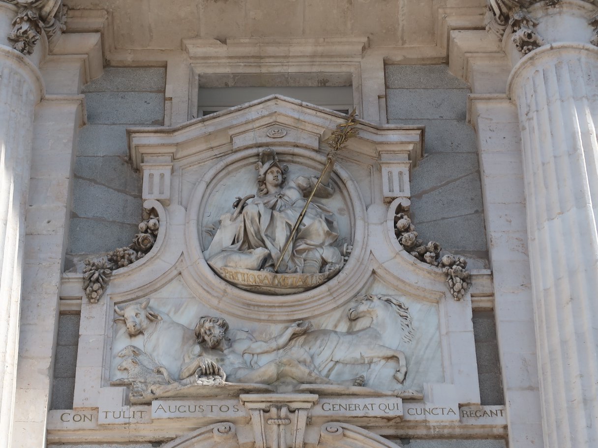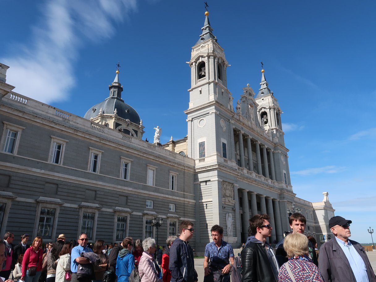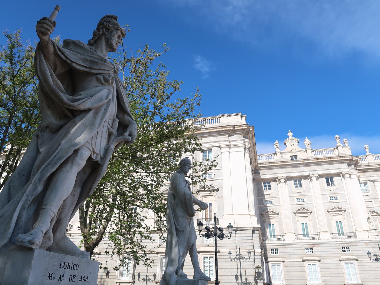 ที่หน้ามุขหนึ่งของบานประตูสู่วังนี้ มีจารึกว่า "จากปราสาทอาหรับที่บูรณะใหม่โดยพระเจ้าเฮนรี่ ที่ ๑ ขยายใหญ่โดยพระเจ้าชาร์ล ที่ ๕ ตกแต่งเติมโดยพระเจ้าฟิลิป ที่ ๒ กระทั่งถูกเพลิงผลาญ ในวันที่ ๒๔ ธันวาคม ปี ๑๗๓๔ แต่พระเจ้าฟิลิป ที่ ๕ ผู้ทรงสร้างใหม่ให้คงอยู่สถาพร ในปี ๑๗๓๘" พระบรมมาราชวังนี้ ก็ประมาณ ๆ ที่กรุงเทพ แต่เก่าก่อนกว่า เฉพาะปีที่บูรณะใหม่ ๑๗๓๘ ก็ พ.ศ.๒๒๘๑ ก่อนสิ้นกรุงศรี ๒๙ ปี ก่อนตั้งกรุงเทพ ๔๔ ปี แต่กล่าวกันว่าใหญ่มาก นับเป็นหนึ่งในพระราชวังที่ยิ่งใหญ่ของโลก พวกเราออกจากโรงแรมด้วยแท็กซี่ ๒ คัน ผ่านถนนรนแคมที่ไม่เหมือนที่บ้านเรา เช่น เขาซ่อมอาคาร ก็ทำฉากบังเป็นรูปอาคารนั้นไว้เลย มีอนุสาวรีย์สารพัด องค์หนึ่งผมเดาเอาเองว่าน่าจะคือพระราชินีนาถอิซเบลล่าผู้ยิ่งใหญ่ พอผ่านดงไม้ริมถนน ก็นึกถึง Santi Opaspakornkij ว่าถ้ามาอยู่มาดริด #BigTree คงไม่มีอะไรทำ เพราะเขาทำไว้ดีมาก ๆ ครั้นถึงลานด้านหลังของพระบรมมหาราชวัง ใหญ่อะไรอย่างนั้น รูปอย่างอนุสาวรีย์ที่อยู่ตามลาน หรือบนหัวเสา กระทั่งตามมุมตึกทั้งหลายนั้น อนิจจา ล้วนแต่เป็นข้าแห่งราชรัฐ - อาณาจักรนี้ทั้งนั้น ระหว่างรอคิวเข้าวัง ผมจึงบอกเล่าคร่าว ๆ ของประวัติศาสตร์ชาติสเปนนี้ ตั้งแต่สมัยหินเก่า ยันยุคโรมันที่ถูกฮันนิบาลบุก จนกระทั่งปลายสมัยจักรวรรดิโรมันอันไพศาล พวกอนารยชนชาวเยอรมานิก เผ่าวิสิโกธ ถอยร่นเผ่าอื่นมาแถวนี้ แล้วแตกแยกแย่งอำนาจ ไปชวนกาหลิบอุมัยยาดส่งทัพเบอเบอร์จากแอฟริกันมาช่วย แล้วมุสลิมอุมัยยาดก็เข้ายึดครอง พอกาหลิบอัปปาสิยะชิงอำนาจอุมัยยาดได้ ก็เกิดกาหลิบอร์โดบาเป็นอิสระอยู่ที่นี่ ก่อนที่ราชรัฐชาวคริสต์จะกลับคืนฟื้นได้เมื่อประมาณ ๕๐๐ ปีที่แล้ว โดยสถาปนามาดริดนี้เป็นนครหลวงใหม่ แล้วราชอาณาจักรสเปนก็ค่อย ๆ ก่อตัว จนเป็นมหาอำนาจใหญ่ของโลกอยู่ยุคหนึ่ง และมีพระบรมมหาราชวังนี้นี้แหละ เป็นศูนย์แห่งอำนาจนั้น จนกระทั่งทุกวันนี้ก็ยังใช้งานพระราชพิธีต่าง ๆ อยู่