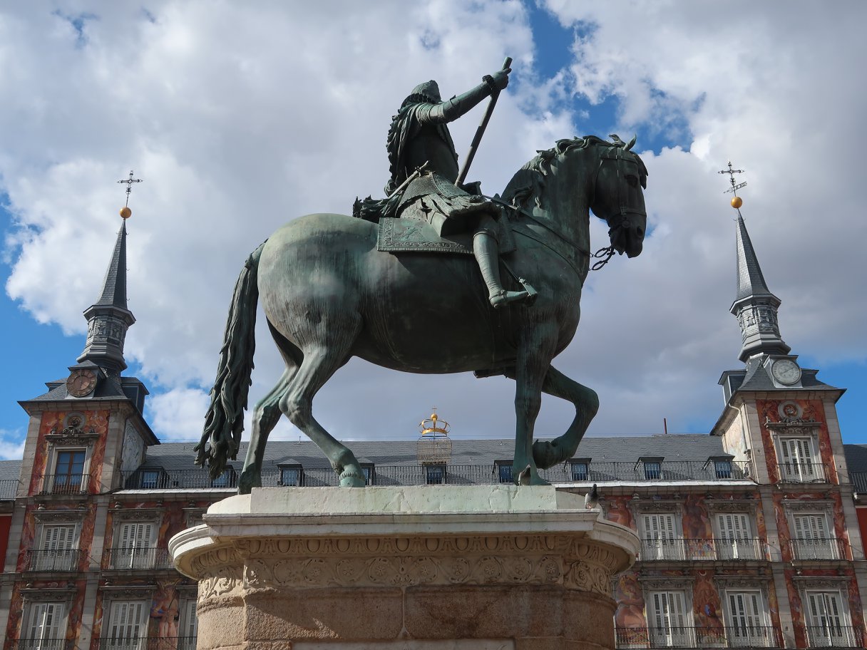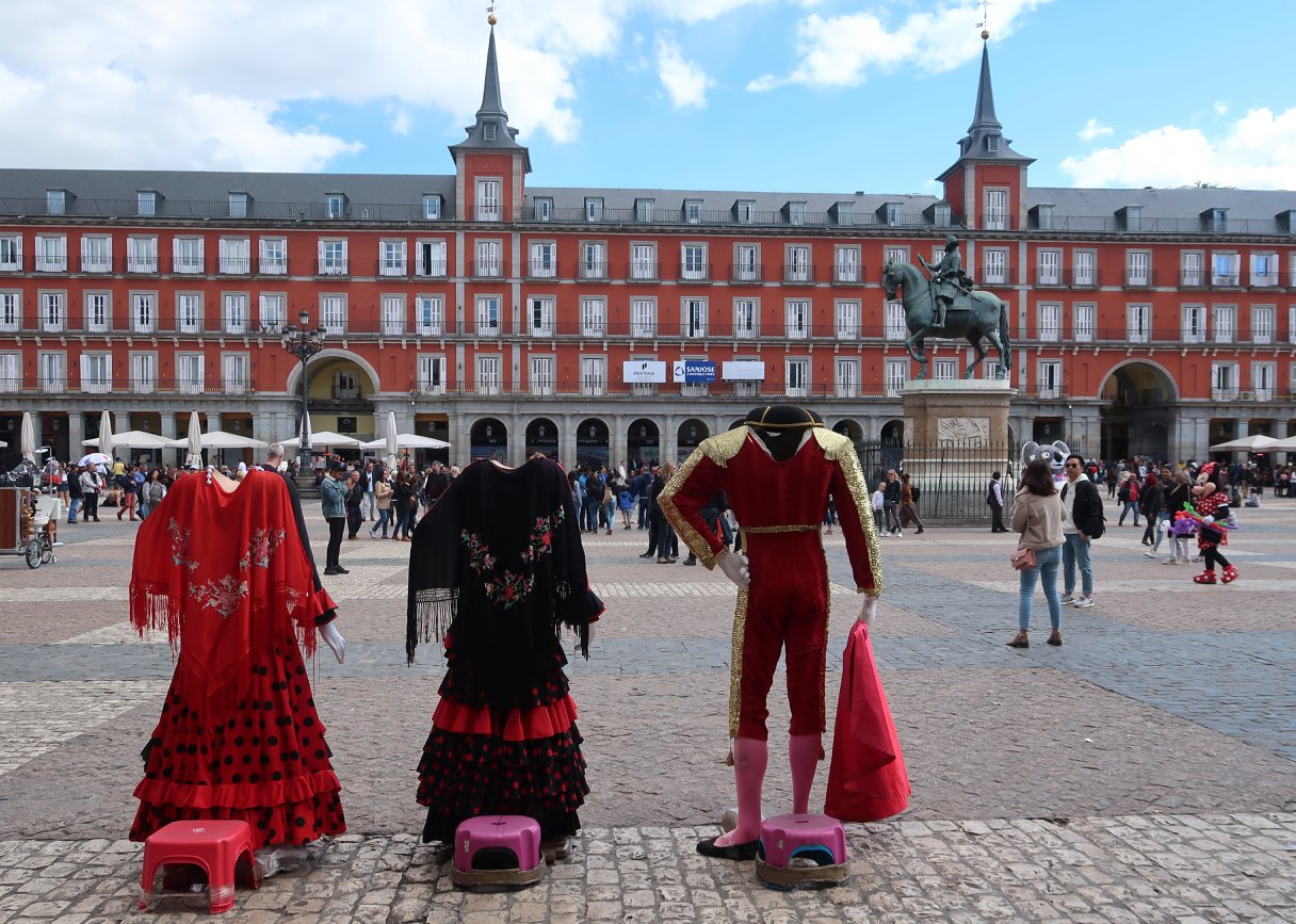 (bunchar.com บัญชาชีวิต 20180502_9_1) สีสันแห่งลานแห่เมืองมาดริดนี้ ไม่รู้สึกว่ามีอะไรมากสำหรับผม โดยเท่าที่ได้เห็นนั้น ส่วนใหญ่คือร้านดื่มกินกลางแจ้งที่เป็นส่วนใหญ่ ในขณะที่ร้านค้าของอื่น ล้วนอยู่ตามถนนด้านนอก นอกจากอนุสาวรีย์ขี่ม้าที่กลางจตุรัส กับหน้าถังของอาคาร Plaza Mayor เห็นมีภาพวาดไว้ น่าจะตามแบบของ Robin ก็ได้ นอกนั้นก็เป็นของแสดงเล็ก ๆ น้อย ๆ ไม่ว่าจะเป็นเสียงดนตรีต่าง ๆ ที่ชวนหลายฝ่ายมาร่วมด้วยช่วยกัน ตลอดจนการแสดงจำอวดแล้ว ก็เห็นคนแต่งเป็นแพะ-แกะ มาซุ่มอยู่ ก็เห็นมีการจัดชุดอย่างสเปนมาให้แต่งตัวถ่ายรูป ประมาณนี้เท่านั้นครับ.