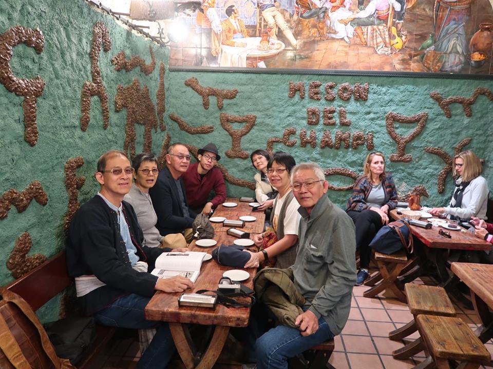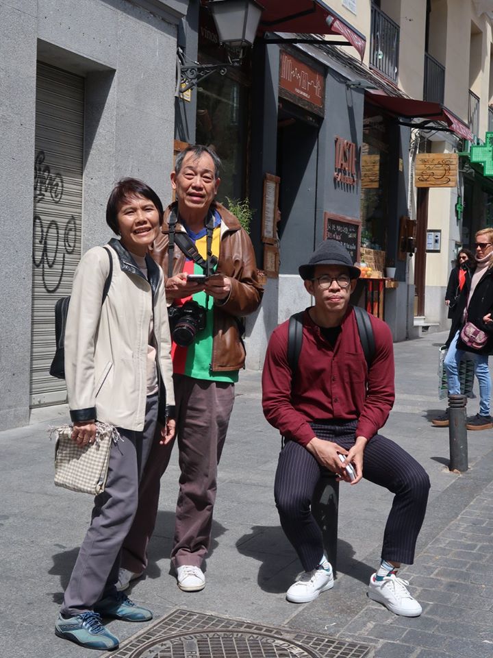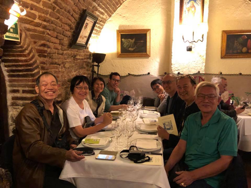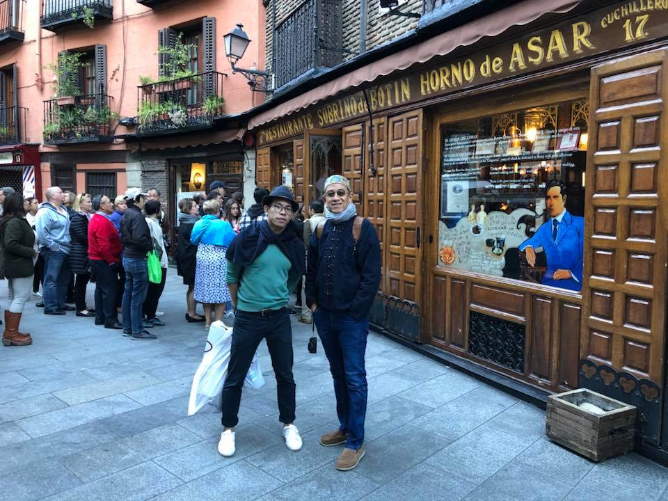 เรื่องกินสำหรับผมนั้น แม้จะชอบของอร่อยแต่ก็ยังไงก็ได้ ยิ่งไปกับหัวหน้าคณะอย่างนี้ แถมมีนักกินอย่าง Tanakorn Juangbhanich ด้วยแล้ว เรียกได้เลยว่า พลอยกินเลยทีเดียว มื้อเย็นวานนี้นั้น จ๋วงจองที่ร้านโบตอง ริมถนนเมซอง ซึ่งเป็นการการกินแต่ก่อนของมาดริด แถมกินเนสลงบันทึกไว้ว่าเป็น "ภัตตาคารเก่าแก่ที่สุดในโลก" คือตั้งเมื่อปี ๑๗๒๕ ก็ พ.ศ.๒๒๖๘ โน่น หลังพระนารายณ์ไม่นานนัก เราก็เลือกกินของเด็ดตามที่เขาแนะนำ อร่อยตามสมควร แต่ว่าเค็มมาก ๆ เที่ยงวันนี้ หลังเที่ยวพระบรมมหาราชวังปัจจุบันแล้ว ก็เลยเดินกลับไปหาที่กินในย่านนั้น ตอนแรกว่าจะกินในตลาดอาหารที่เขาทำไว้สวย เป็นเรือนกระจกน่านั่ง แต่ว่าแน่นมากเกิน เหมือนกับว่าจะต้องแย่งกัน ก็เลยออกเดินหาใหม่ ทำท่าว่าน่าจะอีกนานหรือไม่ก็ไม่ได้กิน พอดี Ting Pongpanich บอกว่าเมื่อเช้านี้ เพื่อนราชินีที่เป็นภริยารองนายกฯ แนะนำร้าน Meson del Champinon มาว่า เห็ดที่นี้ อร่อยเหาะ ก็พอดีเดินผ่านหน้าร้านพอดี อร่อยจริง ๆ เสียด้วย อิ่มออกมา พบเขากำลังทำสารคดีอยู่ที่หน้าร้าน Botin ขณะที่มีคนมารอคิวอยู่ยาวเหยียดไม่แพ้เ้เมื่อคืนวาน เขียนค้างไว้แต่ตอนบ่ายแก่ เพิ่งมาจบตอนนี้ เพราะอาหารเย็นเขาพร้อมให้กินได้ ๓ ทุ่มของที่นี่ ก็ตี ๒ ของเมืองไทยขอรับ