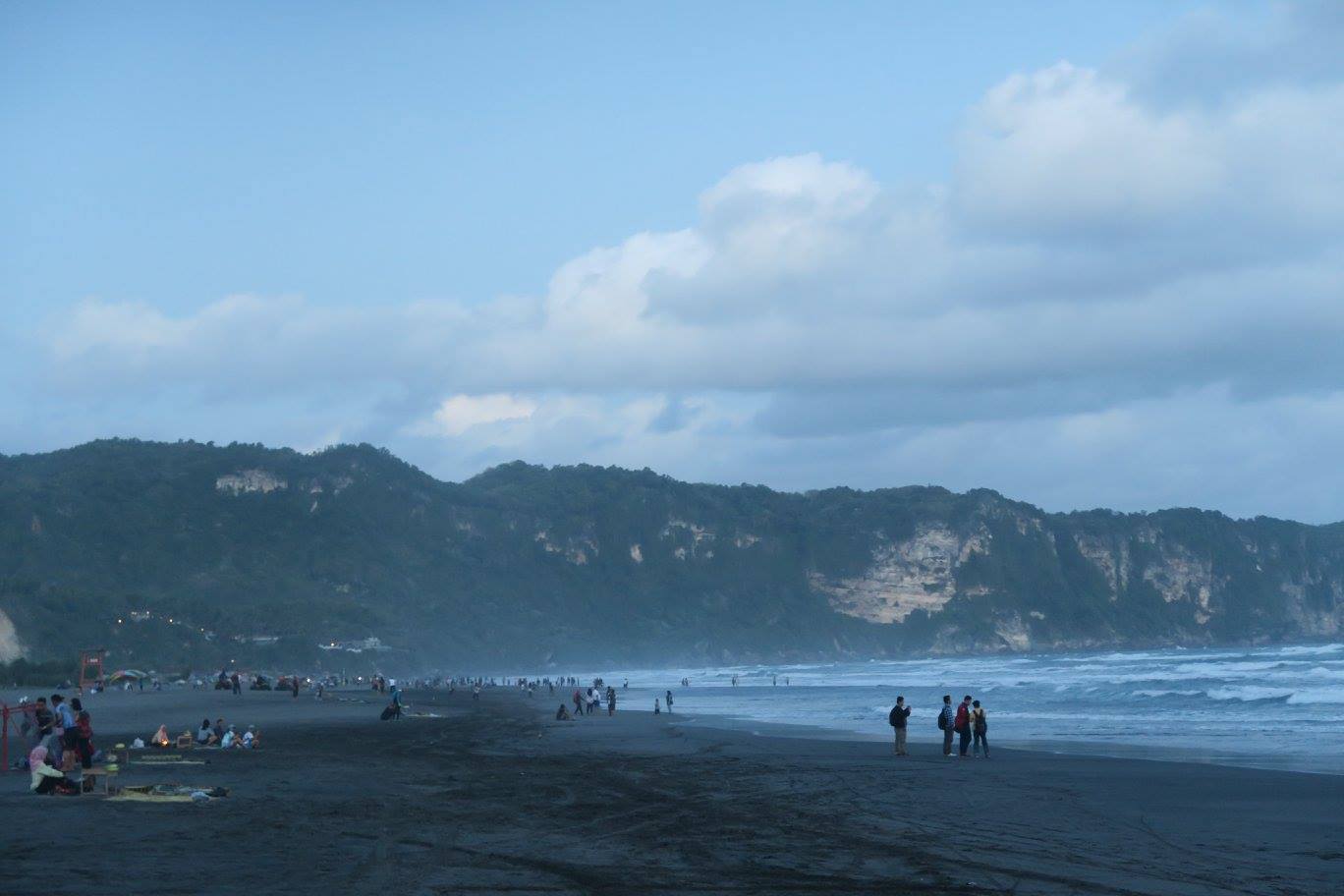 เมื่อแรกถึงเกาะชวาเมื่อเย็นวันที่ ๒๙ กค. คณะของเราต่อไปที่ชายทะเลปารังตรีกิสที่ว่ากันว่ามีชื่อเสียงสุดของเขตยอกยาการ์ตาว่าคลื่นแรงและทรายจากภูเขาไฟเป็นสีดำไม่เหมือนที่ไหน ที่สำคัญคือมีสันดอนทรายใหญ่อย่างที่มีที่เมืองนครและอีกหลาย ๆ ที่ แต่มัคคุเทศก์ที่นี่บอกว่ามีแต่ที่นี่กับที่ฮาวายเท่านั้น