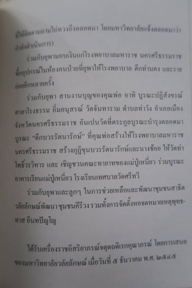 เมื่อคืนนี้ ทุกจังหวะขณะที่ไม่ต้องทำอะไร ผมเลือกทำอยู่อย่างเดียวคือภาวนาเบื้องหน้าแม่ บริกรรมอยู่ชุดคำเดียวนี้ "สู่สุคตินะครับแม่" จนกระทั่งพระมาถึงแล้วทุกอย่างก็ดำเนินไปอย่างไม่น่าเชื่อว่าจะเป็นอย่างที่เป็น คือพอพระเริ่มบทโพชฌงค์ ชีพจรแม่ที่เริ่มสะดุดก็หยุดเป็น ๐ สนิทหลังจากเต้นต่อเนื่องมา เกือบ ๙๓ ปี วันที่ ๑๗ พย.ที่จะถึงนี้