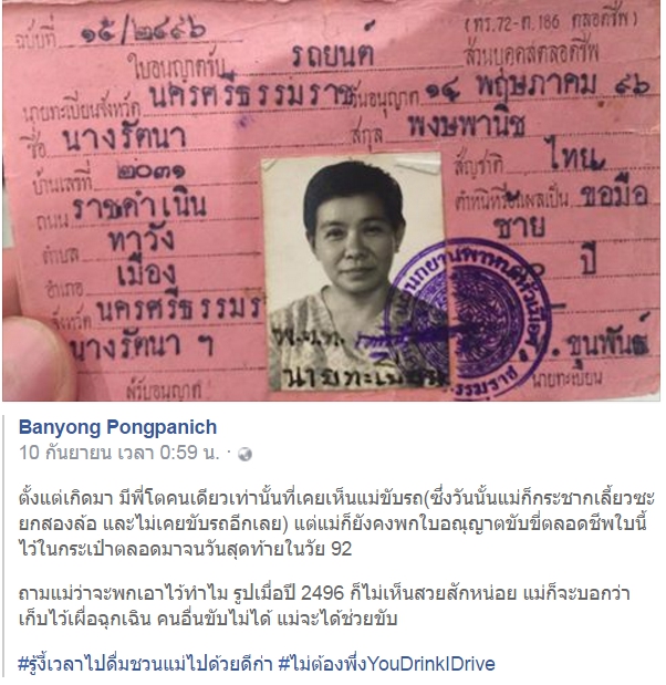 ใบขับขี่ของแม่ที่ขุนพันธ์ฯ ออกให้