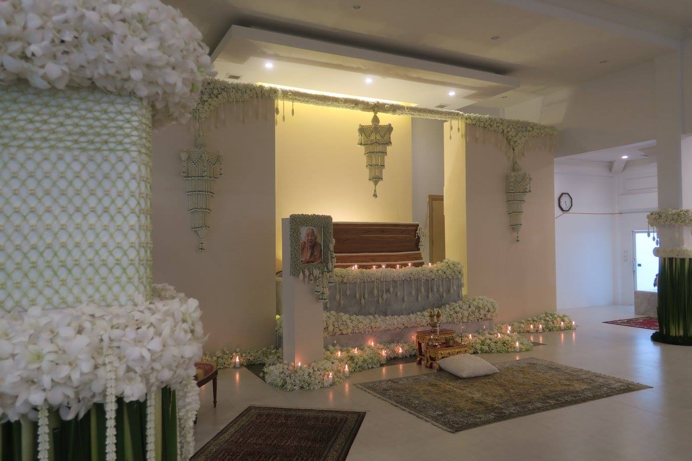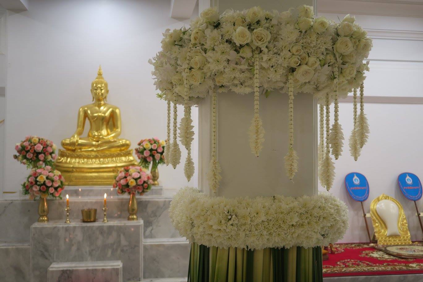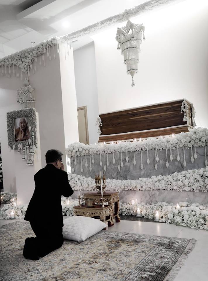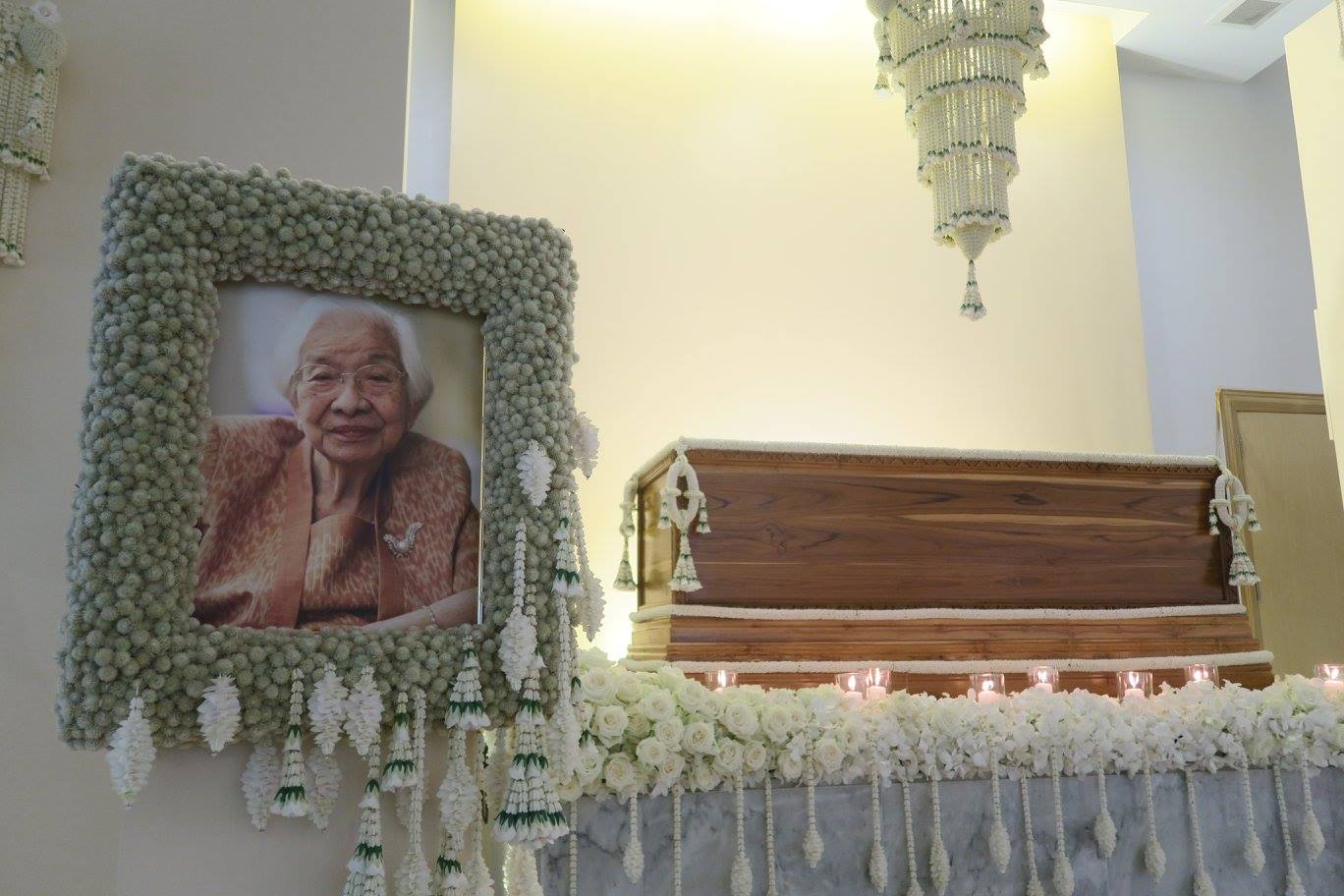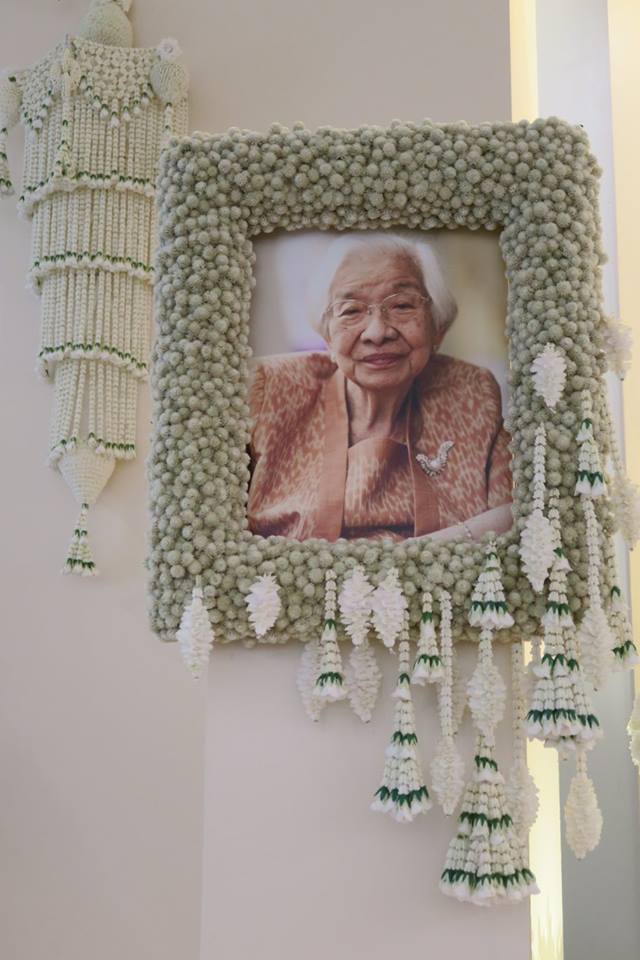 พี่ตั้วให้พี่เอ๊าะจัดดอกไม้แบบเรียบ ๆ เป็นไทย ๆ ตามที่แม่ชอบ และเราเคยจัดตอน ๘๐ ปีแม่ที่สยามสมาคม โดยพี่เอ๊าะยังรักษากุหลาบตามที่แม่ชอบไว้ด้วย