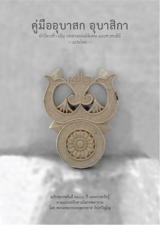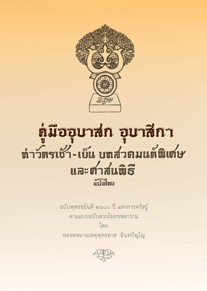 สำหรับช่วงเช้าที่ทำบุญทักษิณานุปทานซึ่งพระครูสิริฯ จากวัดพระธาตุเมืองนครจะมาปรารภธรรมนั้น จะเอาหนังสือคู่มืออุบาสกอุบาสิกาฉบับพุทธชยันตีที่ทำใหม่ให้สมบูรณ์กว่าที่ท่านอาจารย์พุทธทาสทำไว้ โดยบนหน้าปกมีรูปตรีรัตนะด้วยนะครับ