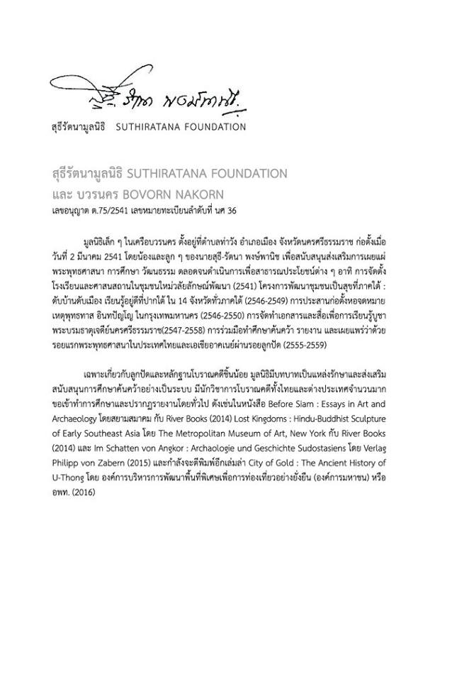 งานนี้ อาจารย์ศรีศักดิ์ว่าถือเป็นการสนับสนุนสมมุติฐานเรื่องสุวรรณภมิที่สำคัญ แต่ทางกรมศิลปากรบอกว่าอย่าเพิ่งด่วนสรุปอย่างนี้ ในขณะที่ทางมหาวิทยาลัยศิลปากรก็มีความเห็นเป็นหลายแนว แต่คณบดีคณะโบราณคดีบอกว่า ใช้เป็นหนังสือให้นักศึกษาอ่านประกอบแล้วครับ ทางด้าน อ.ฉัตรชัย ที่เมืองนครบอกว่าเรียบเรียงอย่างน่าอ่านและเข้าใจง่าย ชอบมาก แต่เราปรับเปลี่ยนปกใหม่ ด้วยเอานานาตรีรัตนะที่พบบนแผ่นดินไทย และนับเป็นหลักฐานสำคัญการเข้ามาถึงของพระพุทธศาสนาสู่สุวรรณภูมิ และพ้องกับชื่อแม่ และ มูลนิธิฯ เพื่อแจกด้วยครับ