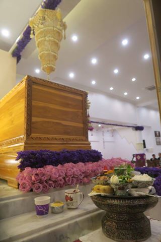 ประเดี่ยวจะไปทำบุญเลี้ยงพระ ๗ วันนะครับแม่ พวกจากเมืองนครบอกว่าจะเอาของกินที่แม่ชอบขึ้นมาถึงดอนเมืองแล้วตรงไปที่วัดเลยครับ เมื่อวานนี้พี่โต-ติ่ง-รุ่ง จัดบัวบกพันธุ์พิเศษกรอบมากที่แม่ชอบและเต้ยเพิ่งเอามาจากเมืองนครพร้อมน้ำปลายำที่แม่ชอบ แล้วก็น้ำชุบโจรให้แม่กินด้วย พอถอนที่ พี่ ๆ มาแย่งกันใหญ่ไม่เหลืออะไรเลยครับ โดยเฉพาะสองพี่ใหญ่ - พี่แดงลูกอาหนั่นอาน้อย กับพี่จำลีย์ลูกลุงสุธรรมป้าล้วน พี่แดงกับพี่ดามาจากอเมริกาครับแม่.