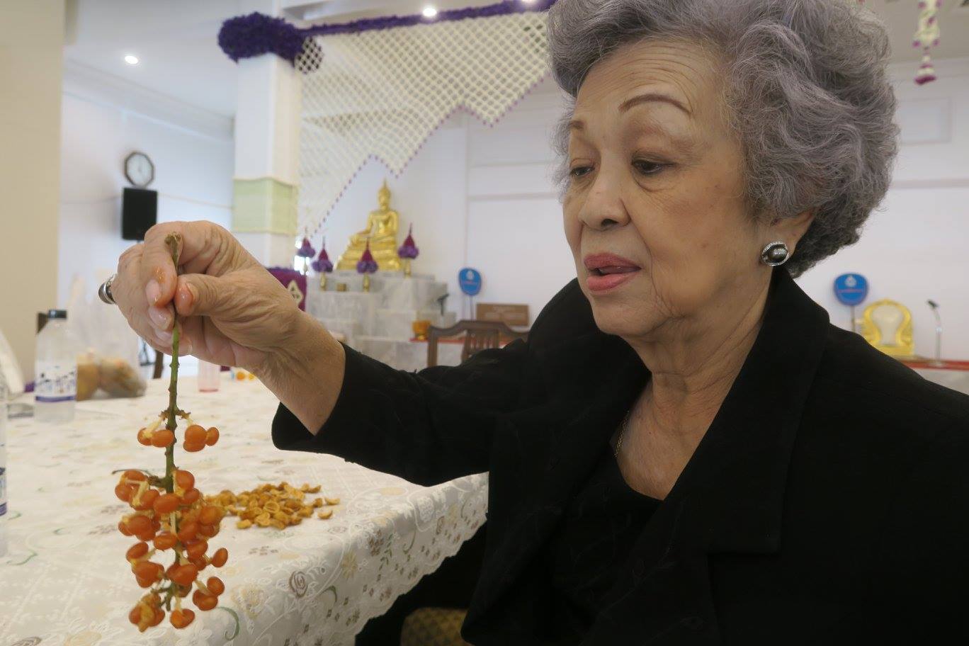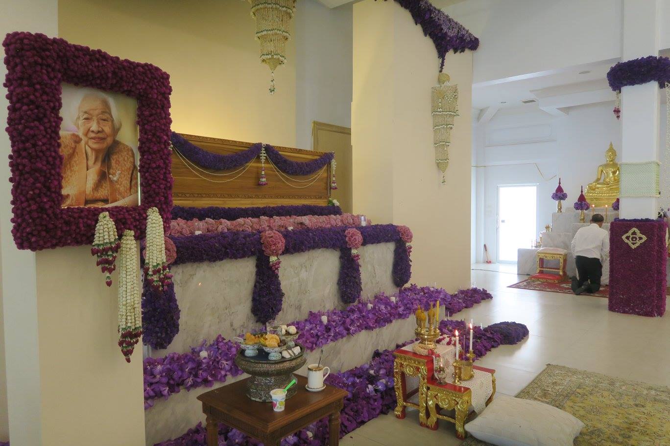แม่ครับ วันนี้ครบ ๗ วันแล้ว พวกเราก็เลยทำบุญเลี้ยงพระเผื่อแม่โดยพี่ตั้วกับพี่หงิดขอให้ครัวโอวี ลูกครูอรุณจัดอาหารมาให้ ส่วนหยวดกับนิ่ม กุ้ง มาลี เขียว แป้น เจียง แดง ขนเอาสารพัดอย่างจากเมืองนคร ล้วนแต่ที่แม่ชอบมาด้วย โดยเฉพาะหมี่ผัดเจ้าอร่อยที่ตอนแรกเขาว่าวันนี้ไม่ทำ หยวดต้องไปขอให้พี่ชายเขาสั่งให้ทำให้แม่ เหนียวกลอยหลายคนบอกว่าไม่ได้กินกันมานานมาก โดยเฉพาะพี่นิด สำหรับเรียนต้นที่สวนซึ่งปีนี้เป็นน้อย หมอสุริยะช่วย pack ด้วยวิชาแพทย์ผู้เชี่ยวชาญจนไร้กลิ่น เอามาถึงแม่ด้วยครับ อาคิด กับพี่แดงพี่ตากินกัน บอกว่าอร่อยมาก กลิ่นน้อย เนื้อแน่น หวานมัน เม็ดเล็กแล้วก็ไม่ติดมือ ส่วนลูก "จำไหร" ที่เอามา อาคิดกับพี่จำลีย์บอกว่าที่ยะลาเรียก "จำปูหริ้ง" ไม่ได้กินกันหลายสิบปีดีดัก ได้สาธิตและปอกให้แม่ด้วยนะครับ นอกนั้นมีมังคุดคัด พี่ตากินคนเดียวสักสามสิบลูก หัวครกราดน้ำตาลพี่นิดบอกว่านานเหลือเกินไม่ได้กิน