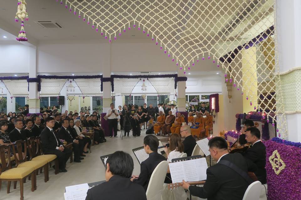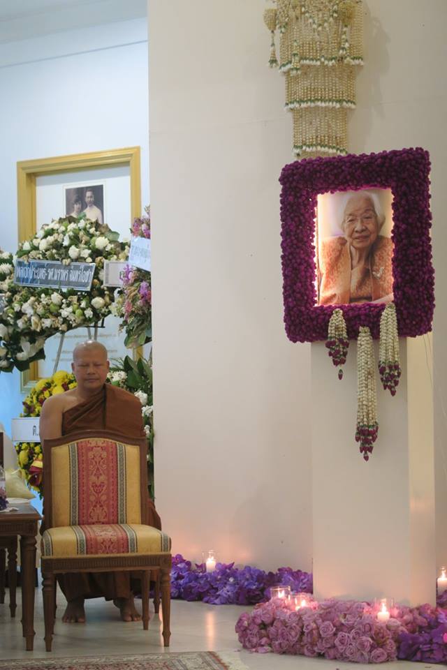 ตอนพิธีธรรม พวกเราเชิญอาศลย์กับผู้ว่าบัญญัติ จันทร์เสนะ หนึ่งในลูกป๋าเปรม ที่ตอนหลังมาเป็นรัฐมนตรีช่วยมหาดไทย เป็นประธาน ได้พี่ตุ๋ยเป็นคนนำกราบแม่ พระอาจารยนวลจันทร์บอกว่าจริง ๆ แล้วไม่ถนัดเทศน์งานศพและไม่เคยเลย แต่ก็มาเพื่อเยี่ยม และนำดนตรีภาวนามาฝาก แต่ท่านบอกว่าถ้าจะให้สมควรแก่การเป็นทายาท ให้เอากรณีที่แม่สงบสิ้นเป็นอารมณ์ภาวนา