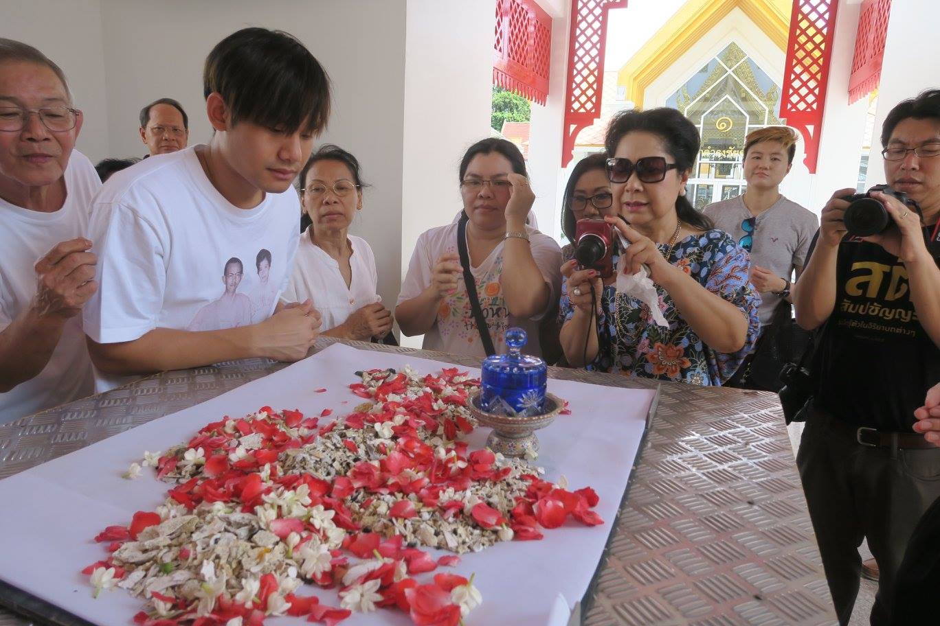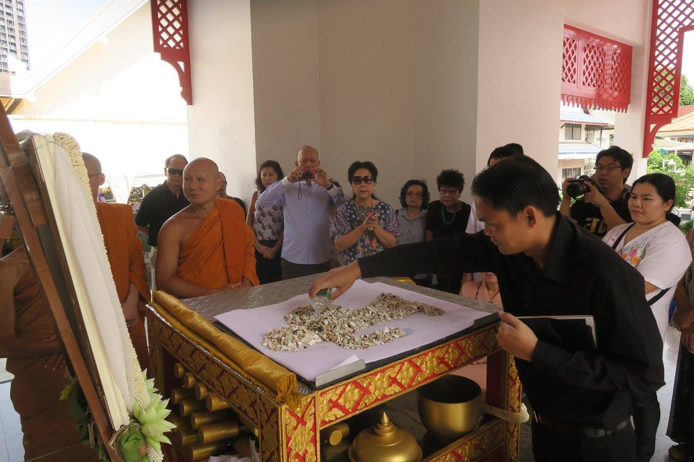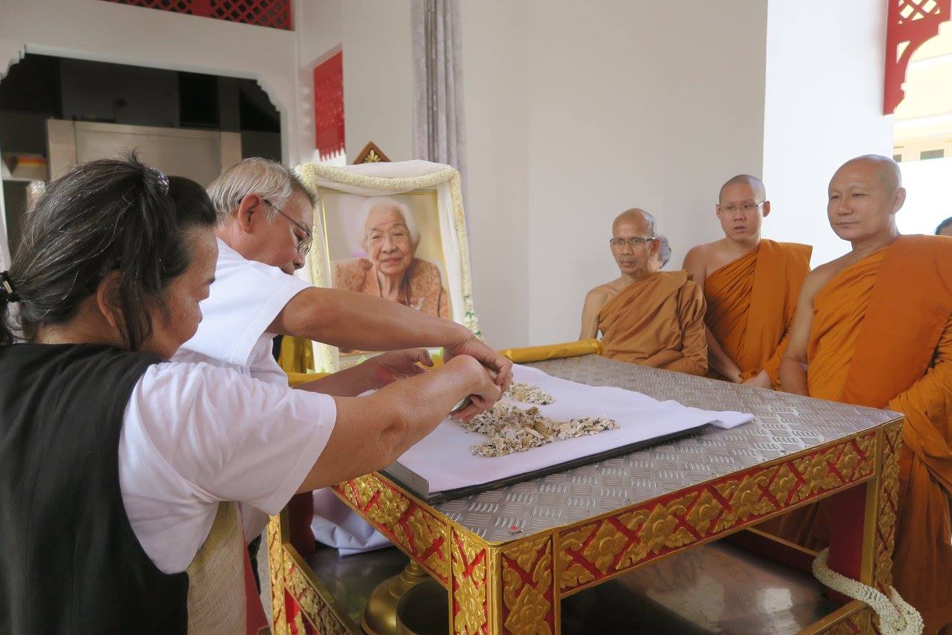 แม่ครับ เมื่อเช้าวันที่ ๑๘ นั้น พวกเราไปถึงวัดหลังหลวงพี่จ้อย ท่านสมชาย และ ท่านคัมภีรญาณ ศิษย์สวนโมกข์ที่เมตตามาดับธาตุของแม่ กับอีก ๒ ธรรมวาที มีท่านพระครูวิจารณ์จากบางปะกง และ ท่านภาณุวัดพระราม ๙ โดยระหว่างรอเวลาเต้ยแวะมาอยู่กับแม่คนเดียวบนเมรุอยู่พักใหญ่ กระดูแม่ขาวสวยสะอาดงามเหลือเกินครับ มีครบทุกส่วน แต่ไม่เห็นเขี้ยวฟันเลยครับ
