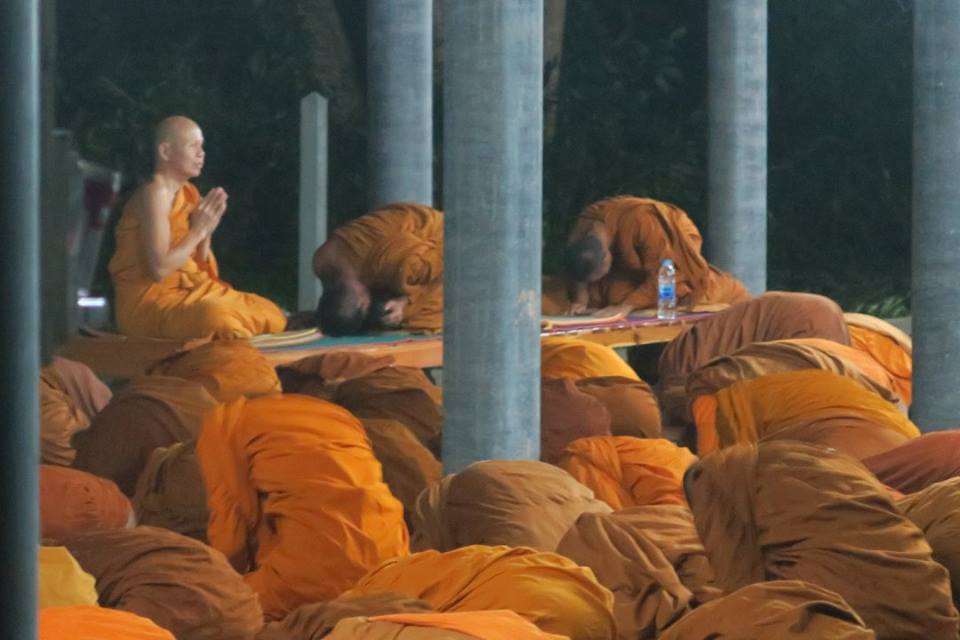 เมื่อคณะพระจาริกธุดงค์ทำวัตรเย็นที่สวนโมกข์ไชยา