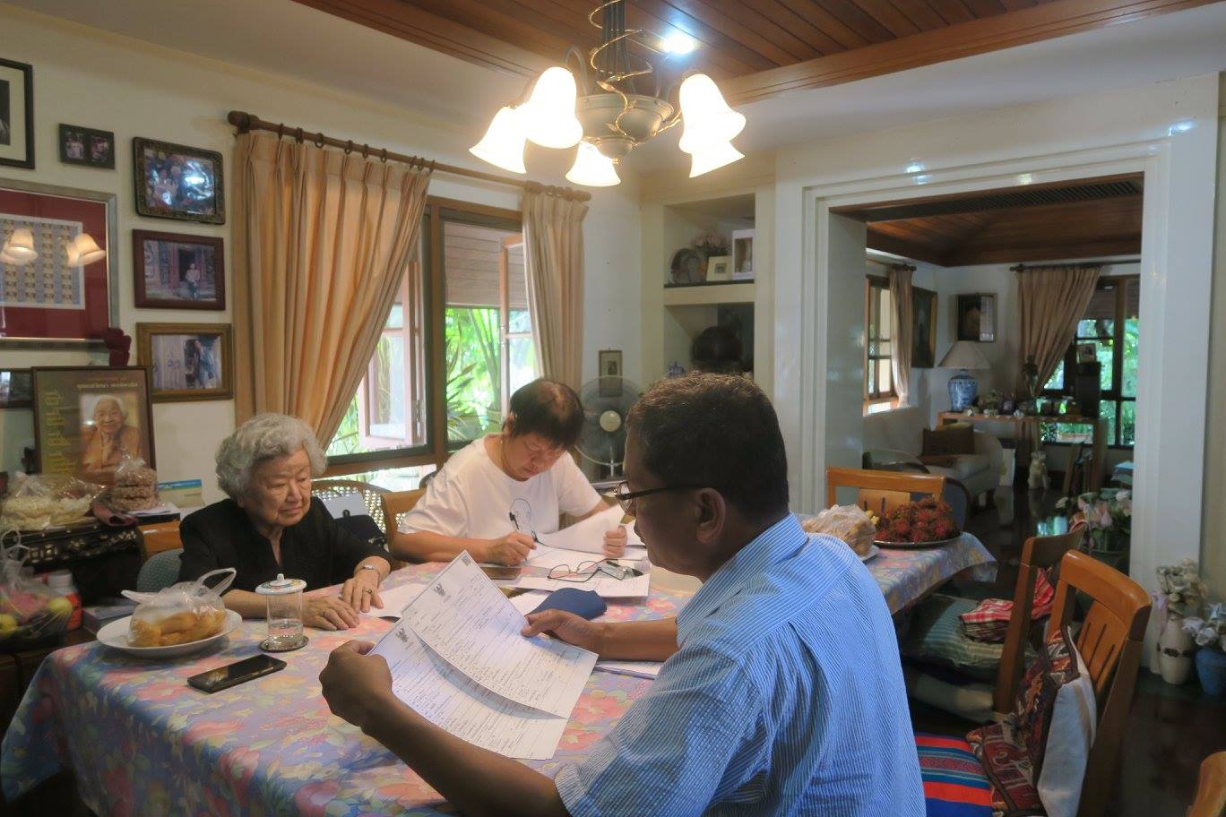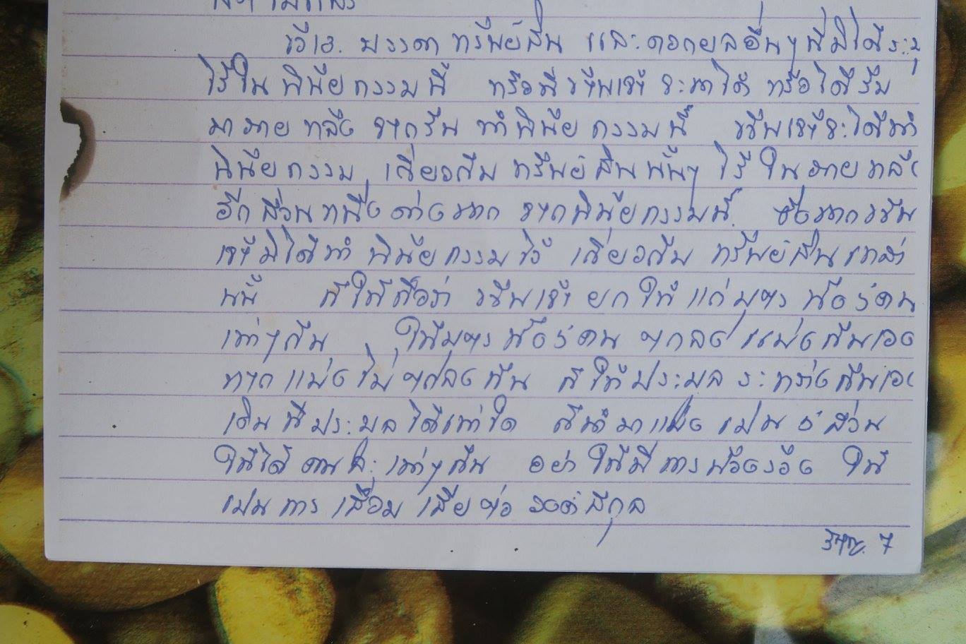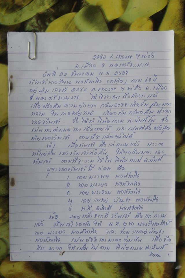 สุดท้ายเราก็พบพินัยกรรมฉบับนี้ที่แม่เขียนไว้ตั้งแต่ปี ๒๕๒๗ ตอนอายุ ๖๒ ปีโน่น แล้วปรับแก้เล็กน้อยในปี ๒๕๕๖ ตอนอายุ ๙๐ ปี ก่อนที่จะจัดโอนโฉนดที่ดินให้จนหมดแล้วเมื่อปีที่แล้ว โดยแม่จัดใส่ในสมุดบันทึกวางเด่นอยู่ในตู้เฉพาะของแม่ ว่า