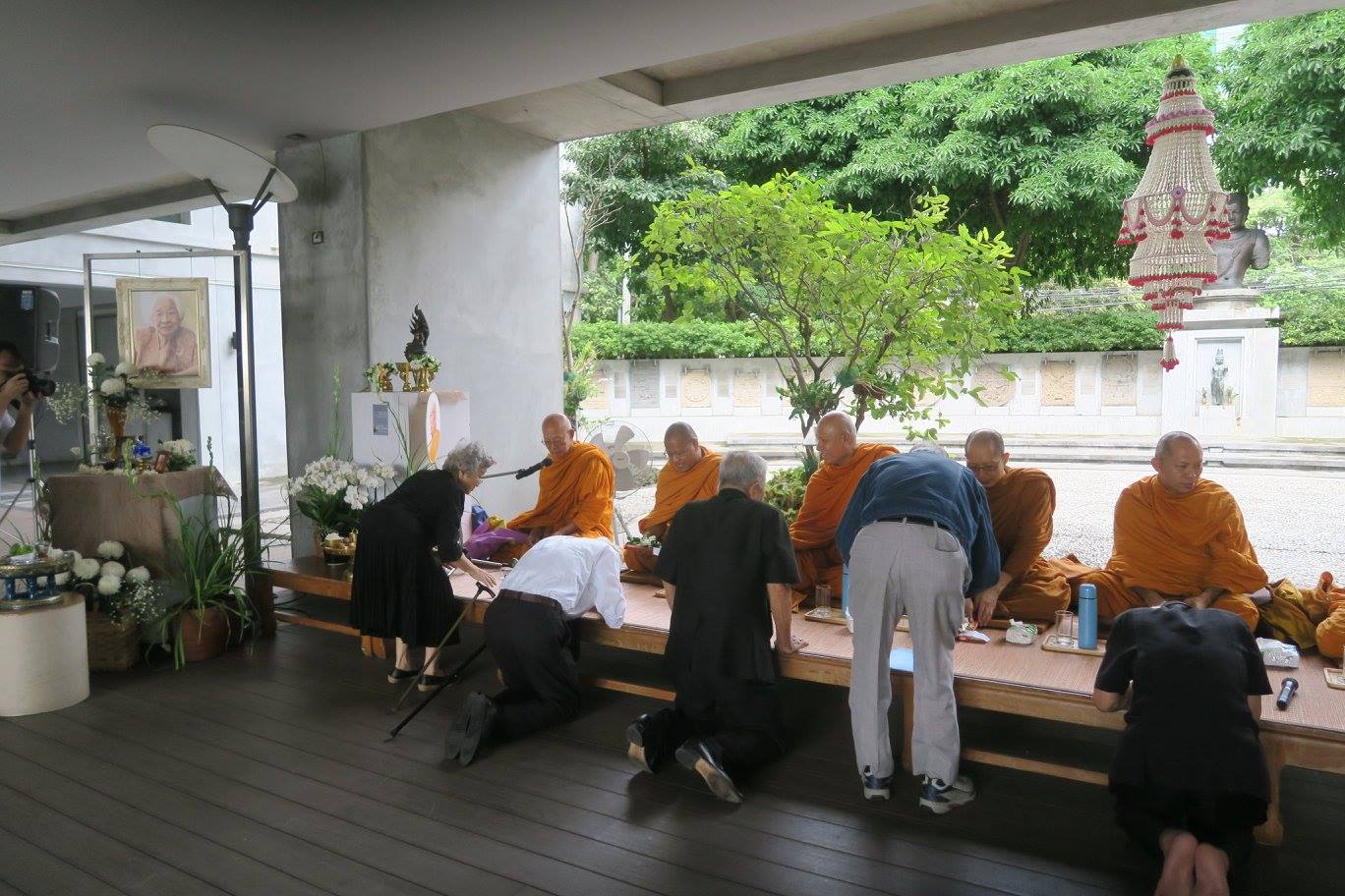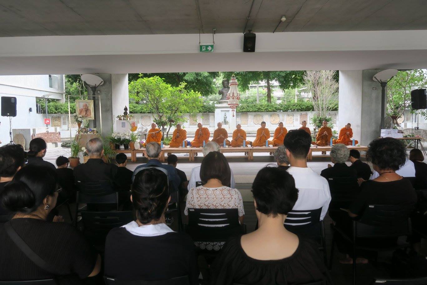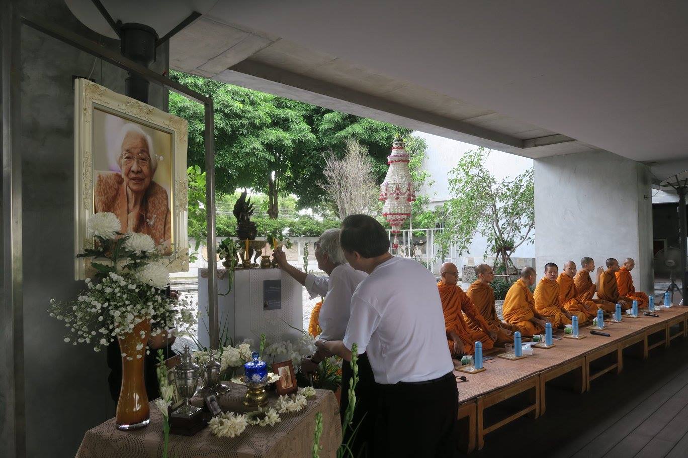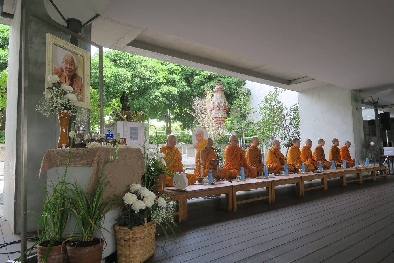 เราขออาศลย์เป็นคนจุดเทียนธูปบูชาพระ เต้ยทำหน้าที่นำสวดมนต์พิธีต่าง ๆ ด้วยคู่มืออุบาสกอุบาสิกา แล้วอาราธนาคณะสงฆ์สวดพระปริตรแปลโดยท่านอาจารย์มหาประนอมเมตตาสาธยายถึงองค์คุณแบบที่ทุกคนได้รับประโยชน์สมกับที่แม่ก็รับไปแล้วเต็ม ๆ เมื่อคืนวันที่ ๗ ต่อวันที่ ๘ เมื่อ ๕๐ วันก่อน