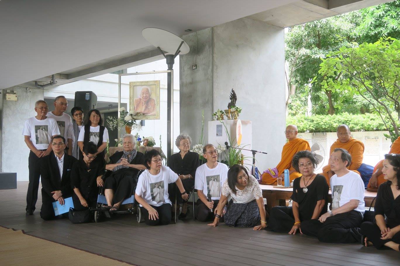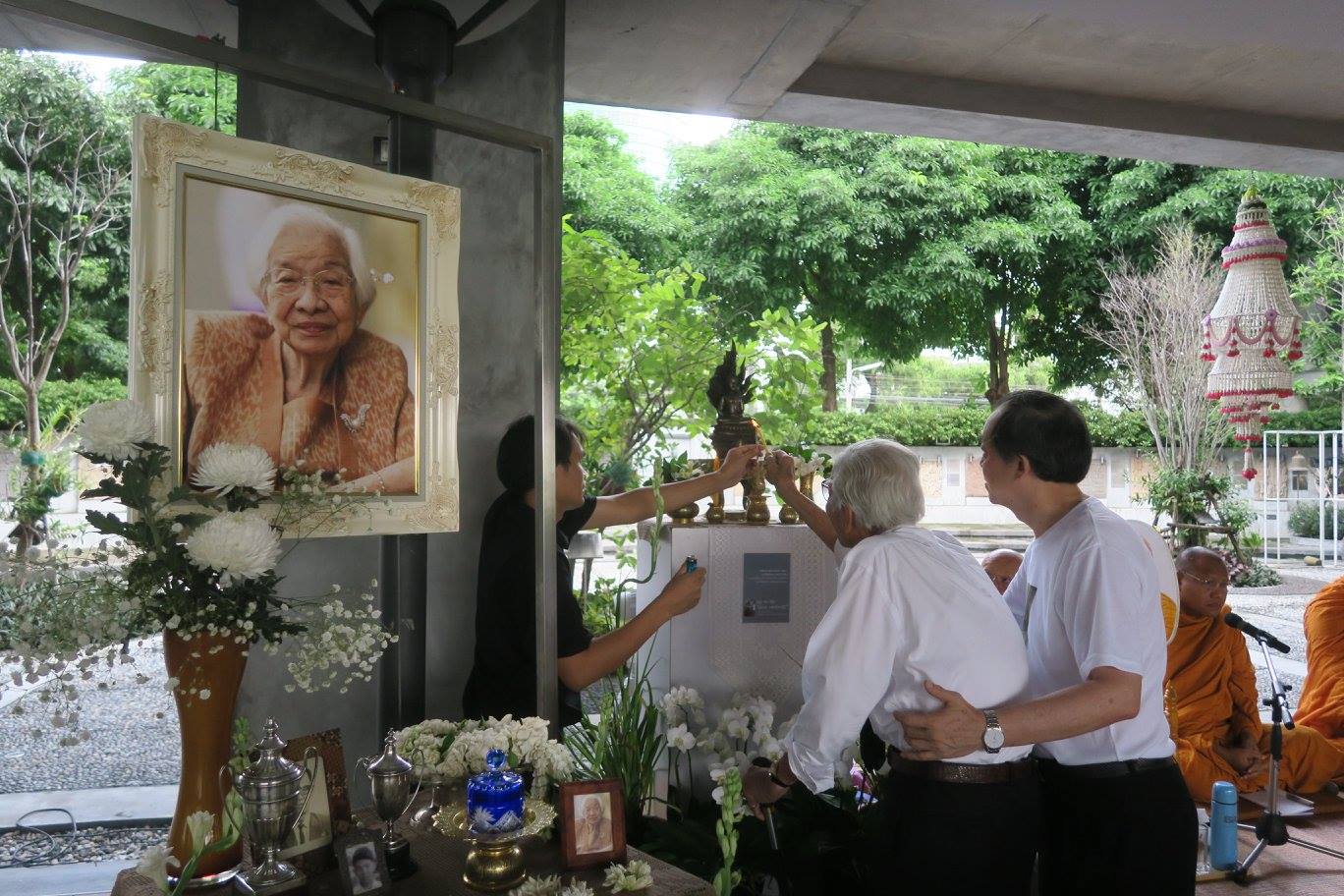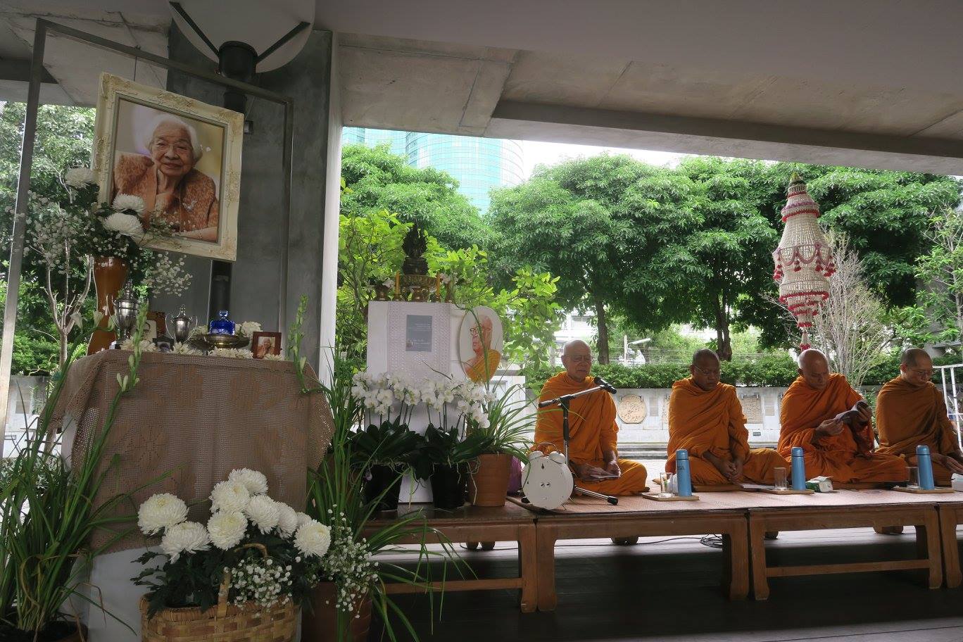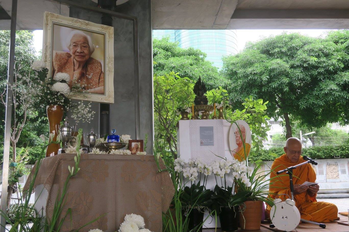 เราขออาศลย์เป็นคนจุดเทียนธูปบูชาพระ เต้ยทำหน้าที่นำสวดมนต์พิธีต่าง ๆ ด้วยคู่มืออุบาสกอุบาสิกา แล้วอาราธนาคณะสงฆ์สวดพระปริตรแปลโดยท่านอาจารย์มหาประนอมเมตตาสาธยายถึงองค์คุณแบบที่ทุกคนได้รับประโยชน์สมกับที่แม่ก็รับไปแล้วเต็ม ๆ เมื่อคืนวันที่ ๗ ต่อวันที่ ๘ เมื่อ ๕๐ วันก่อน