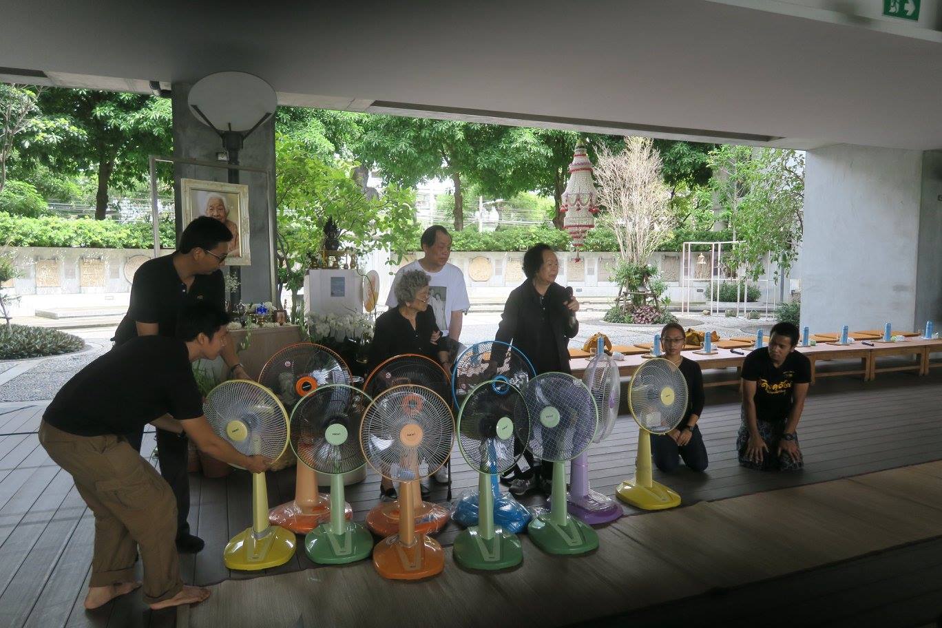 หลังถวายภัตตาหาร ท่านอาจารย์โพธิ์กล่าวอนุโมทนาแล้วพระฉันภัตตาหาร เรามีการมอบพัดลมที่เป็นพวงหรีดแก่มูลนิธิสืบ นาคะเสถียร เพื่อเอาไปมอบแก่ผู้พิทักษ์ป่าห้วยขาแข้ง โดยน้ารัตยามาเป็นคนรับมอบ