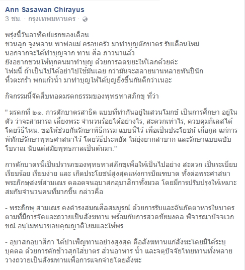 น้าพากับพวกเราก็ไปร่วมกันเป็นเจ้าภาพกับแม่ตามที่ทำกันมาทุกปีตั้งแต่ตั้งสวนโมกข์กรุงเทพกันมา โดยเฉพาะปีนี้เป็นปีพิเศษของแม่ที่ผ่านภพภูมิใหม่ ที่สำคัญยังเป็นเดือนแรกหลังพระเจ้าอยู่หัวสวรรคตด้วยครับ