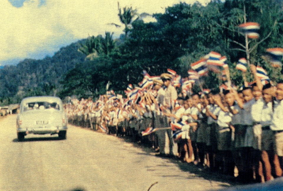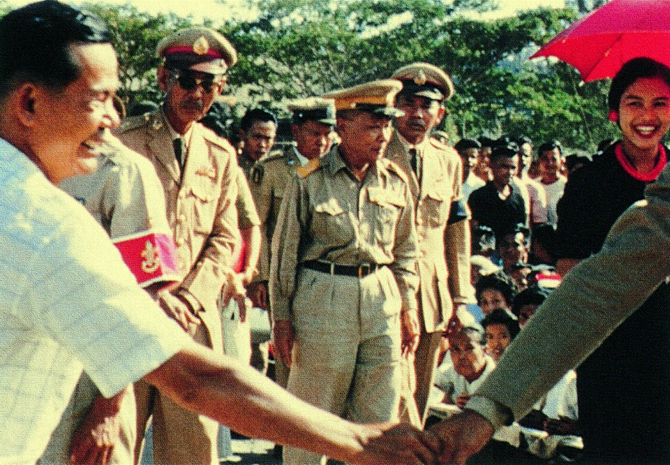 ภาพ ครั้งเสด็จเยี่ยมราษฎรจังหวัดนครศรีธรรมราช ที่อำเภอทุ่งสง เมื่อปี ๒๕๐๒ ทรงรับพระแสงราชศาสตราประจำเมืองนครที่เขตต้อแดนตรังจากผู้ว่าราชการจังหวัด แล้วอข้าสู่อำเภอทุ่งสง มีแม่เฒ่าอายุ ๑๑๓ ปีมาเข้าเฝ้า มีชายคนหนึ่งที่อยากรู้มากว่าคือใคร ตะโกนขึ้นว่า "คิดถึงมาหลายวันแล้ว ขอจับมือหน่อย" แล้วก็ทำอย่างในภาพ ทำให้พระราชินีแย้มพระสรวลอย่างในภาพครับ.