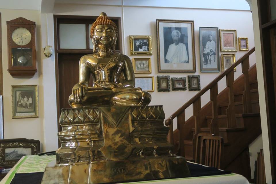 พอได้ไปถึงนั้น ก็เลยตามไปกราบท่านพระครูสิริฯ เพื่อประสานเตรียมการต่าง ๆ ก่อนการประชุมบ่ายนี้ที่ศาลากลาง ก่อนกลับบ้าน ก็เลยแวะไปกราบท่านเจ้าคุณศรีฯ ที่วัดพระนคร เพื่อนิมนต์คณะพระที่บวชถวายในหลวงวันที่ ๒๗ นี้มาร่วมด้วย พร้อมกับขอรับพระพุทธสิหิงค์องค์พิเศษที่ท่านเพิ่งสร้างจำกัดเพียง ๑๐ องค์เนื่องในการฉลองพระอาราม ๑๐๐ ปี และได้เห็นเมื่อวันพาคณะบุญจาริกเข้าไปกราบพระศากยมุนีศรีธรรมราชในพระวิหารหลวง ฝากนายต๋อยช่วยประสาน ท่านจัดองค์ลำดับกลาง หมายเลข ๕ ไว้ให้ ก็เลยอัญเชิญเข้าบ้านที่ดอกพวงโกเมนตรงเรือนไม้รัตนานุสรณ์ที่ปรุงเมื่อวันก่อนกำลังบานสะพรั่งอีกรอบ หากวันนี้ฝนขาดเม็ด จะพาน้าพาไปชม พร้อมกับเชิญพระสิหิงค์ขึ้นห้องพระของคุณตานะครับแม่.