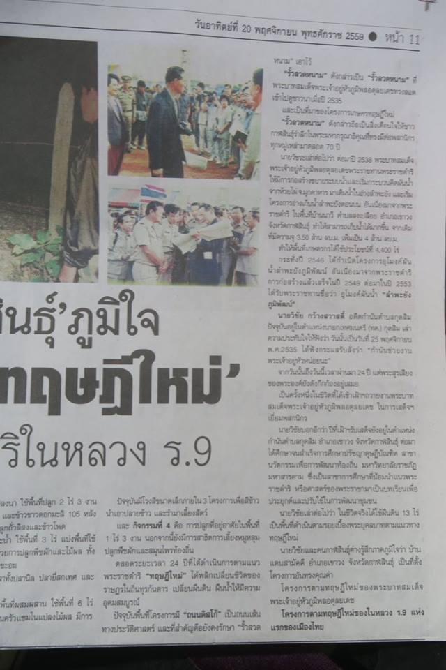 ภาพ ปกหนังสือสวัสดี เดือน พย.๕๙ และ รายงาน "ต้นแบบทฤษฎีใหม่" ที่เขาวง กาฬสินธุ์ ในมติชน วันที่ ๒๐ พย.๕๙