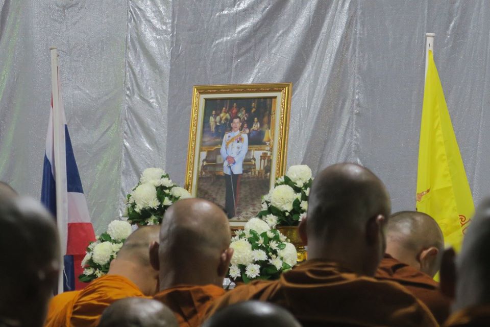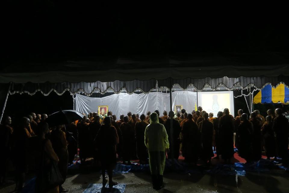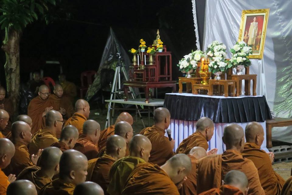 เมื่อคืนวันที่ ๑ ซึ่งครบรอบ ๕๐ วันสวรรคตในหลวงรัชกาลที่ ๙ พร้อมกับถวายพระพรชัยแด่ในหลวงรัชกาลที่ ๑๐ ที่ตอบรับทรงราชย์ วันนั้นคณะพระจาริกธุดงค์จากอุทยานธรรมดงยาง ๖๒๕ รูป เดินถึงที่นี่ อันเป็นบริเวณที่พระองค์ทรงเสด็จมาเมื่อวันที่ ๑๔ มีนาคม ๒๕๐๒ ตั้งใจจะขึ้นไปสมโภชป้ายพระนามาภิไธยบนน้ำตก แต่ทางอุทยานแจ้งว่าฝนหนัก ไหลผ่านป้ายมากจนขึ้นไปไม่ได้ ส่วนการสวดถวายทั้งสองพระองค์นั้น เทศบาลจัดปะรำเล็ก ๆ ริมน้ำ นอกนั้น พวกเราขอให้ทำง่าย ๆ คือมีเพียงลานกว้างอย่างที่เห็น พระทั้งนั้นนั่งบนผ้าอาสนะที่ท่านนำมาเองทั้งนั้น รวมทั้งนายอำเภอที่เป็นประธานและทุก ๆ คนที่เข้าร่วมงาน