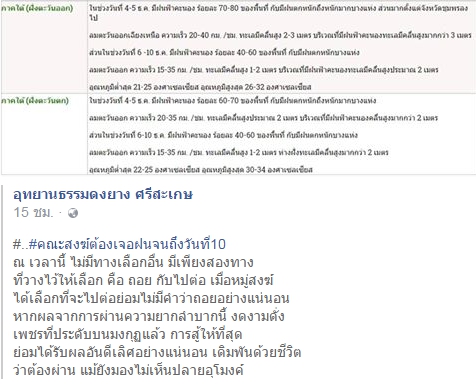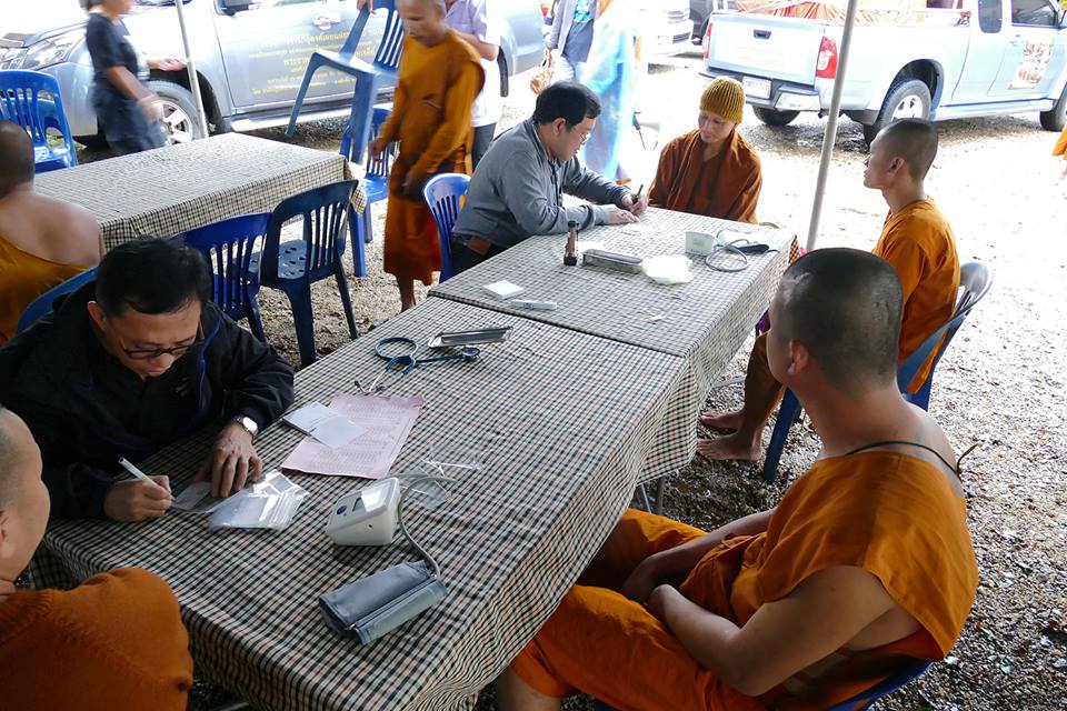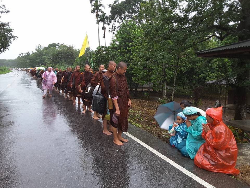 ๒) จากหมอรังสิตและคุณพยาบาลอิ่ว ที่ร่วมกับหมอพยาบาลและผู้คนหลายโรงพยาบาลในเมืองนครตลอดจนสถานพยาบาลเอกชนและห้างร้านต่าง ๆ ได้ตั้งกองรักษาพยาบาล บอกว่าการป่วยหนักทุเลาลงแล้ว (รวมทั้งพระอาจารย์จรันด้วย) และน่าจะไม่เป็นอุปสรรคต่อการเจริญธุดงค์กันต่อ ในขณะที่บริขารต่าง ๆ ก็พร้อมและเพียงพอ มีการหาไตรจีวรเติม เครื่องกันฝนเติม จนพอแล้ว ณ ขณะนี้ ไม่ต้องการอะไรเพิ่ม นอกจากหากจะมีหมอช่วยดูบ้าง ณ บางจุดที่ผ่านไป กำลังจะประสานทีมหมอสุราษฎร์เพื่อช่วยรับช่วง ใครรู้จักใครช่วยบอกด้วยนะครับ แต่ก็ไม่รู้เหมือนกันว่าท่านจะอยู่ในป่ากี่วัน ออกจากป่าทางไหนในสุราษฎร์ เท่าที่ทราบ น่าจะแถบ ๆ บ้านส้อง นาสาร บ้านนาเดิมกระมัง ?