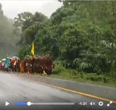 ๑) เมื่อวานนี้ คณะพระพักที่สำนักสงฆ์ศูนย์ปฏิบัติธรรมโรงเหล็ก ด้วยเหตุแห่งฝนตก น้ำป่าหลาก เส้นทางขาดเดินฝ่าไปเป็นอันตราย ประกอบกับพระจำนวนมากอาพาธมาก ไข้สูง เช้านี้เริ่มออกเดินธุดงค์ต่อสู่วัดเปลี่ยน ในเขตกรุงชิง เพื่อต่อไปตามทางที่ตั้งใจมาฝึกฝนอดทนตามธุดงควัตรที่สมาทานไว้ พระเลขาท่านอาจารย์จรันบอกว่า ก็จะไปตามทางต่อ ๆ ไป คืนนี้น่าจะพักที่วัดเปลี่ยน นบพิตำครับผม