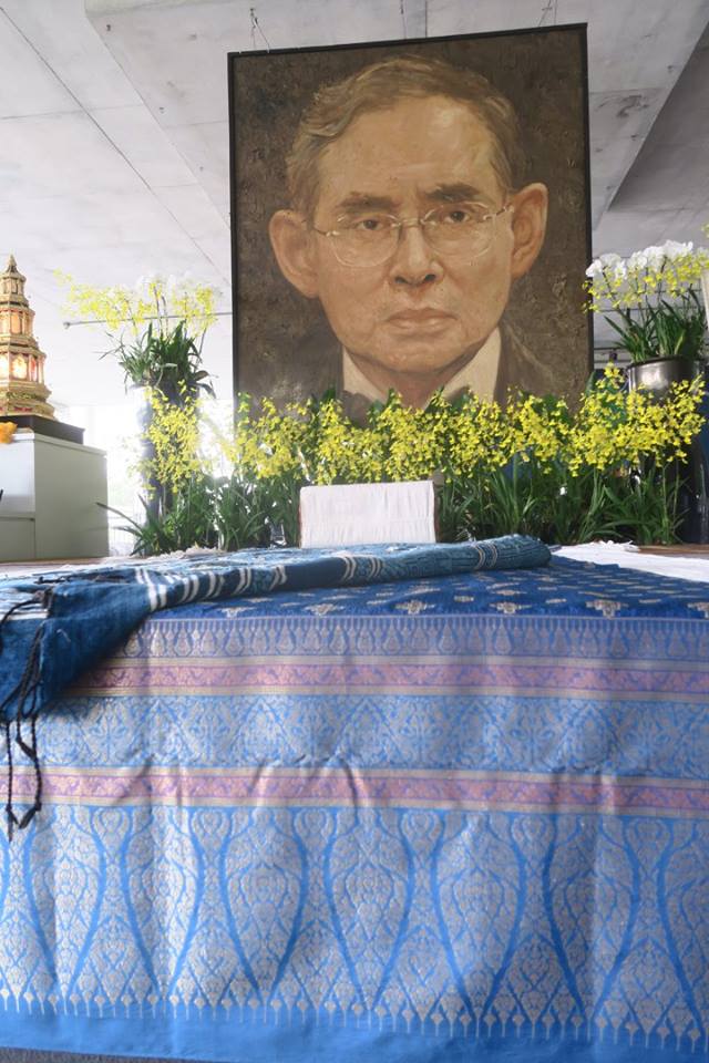 รอมานาน จนเมื่อไม่กี่วันก่อน ได้รับส่งมาถึงบ้าน แต่ไม่ทันแม่ใช้ วันนี้ก็เลยขอยืมมาปูลาดรองผ้ากราบพระเจ้าอยู่หัวในงานวัน "พ่อยังอยู่" ที่สวนโมกข์กรุงเทพนะครับ ได้รับแจ้งว่าทอกันหลายสิบคน ทอได้วันละ ๑ เซนต์ ต่อไปนี้เลิกทอลายนี้แล้วเพราะยากมาก ๆ และหมดกำลังกันเลย