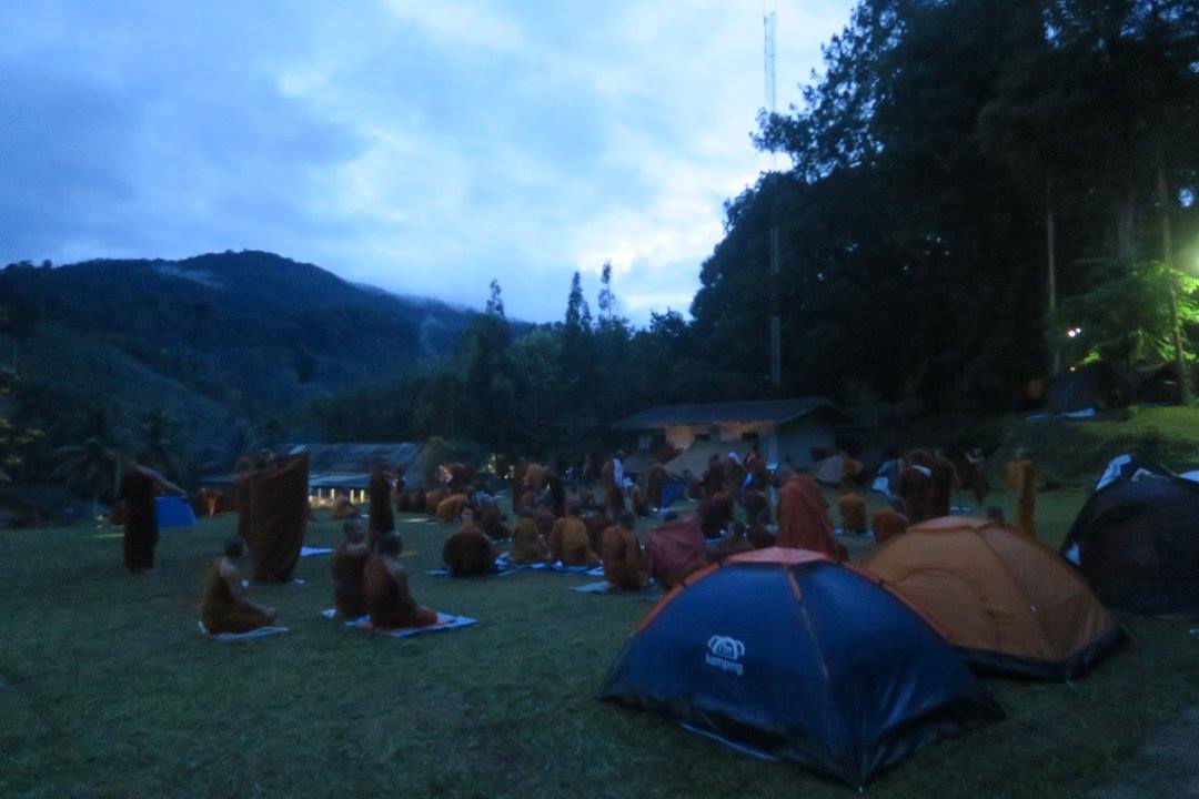 เมื่อไปถึงนั้น พระท่านเข้าที่กันน่าจะเรียบร้อยนานแล้ว พระอาจารย์จรินกำลังเดินเยี่ยมพร้อมกับออกประกาศให้ลงไปรวมตัวเพื่อทำวัตรสวดมนต์ร่วมกันที่ลานสนามใหญ่ด้านล่าง พร้อมกับทำทายว่า