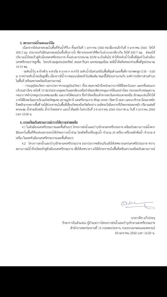 นี้ ประกาศกรมชลเรื่องน้ำท่าจากคีรีวง