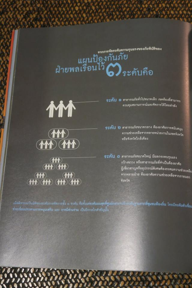 โดยหลักการแล้ว มีการจำแนกภัยพิบัติไว้ ๓ ระดับ คือ ขนาดเล็กเฉพาะที่พอจัดการเองได้ ขนาดกลางอาจต้องการการสนับสนุนเสริม และขนาดใหญ่รุนแรงและกว้างขวางต้องระดมสรรพกำลังมาร่วมด้วย