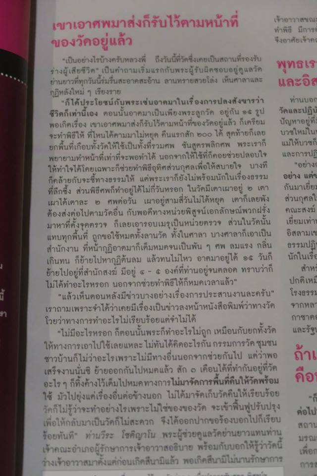 - พระเราก็พยายามทำหน้าที่เท่าที่จะพอทำได้...คอยช่วยปลอบใจ...ช่วยทำพิธีอุทิศ...แต่พระเราก็ไม่พร้อมนักในเรื่องธรรมที่ลึกซึ้ง