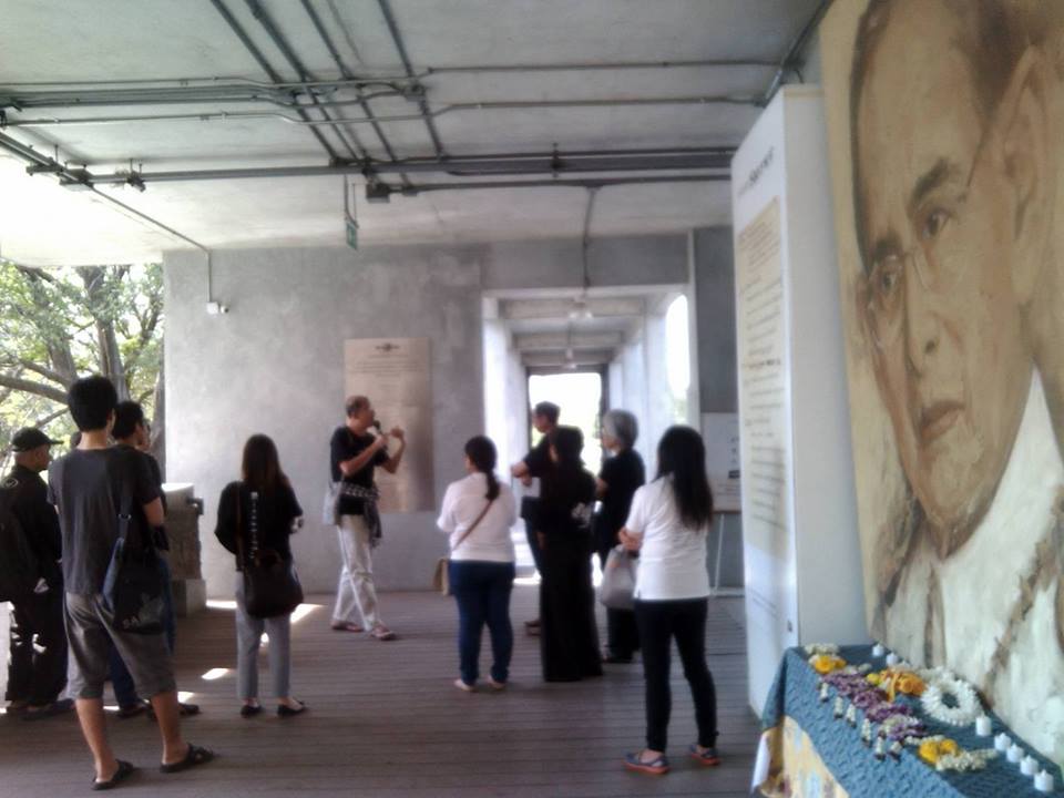 หลังผ่าน ๑๒ ชม.ภาวนา ปฏิบัติบูชาพระเจ้าอยู่หัวเมื่อเช้าวานนี้ ที่ผมงีบครู่หนึ่งแล้วลุกมานำชมอีกรอบ มีคนมารอและร่วมตามไม่มากไม่น้อย ส่วนใหญ่เป็นคนที่เพิ่งมาเป็นครั้งแรก มีแม้ นศ.ที่บอกว่าอยากมาเรียนรู้ แถมภาคีเพลินธรรมมาร่วมด้วย ๒ ท่าน คือพี่รัตน์กับคุณหุ่น