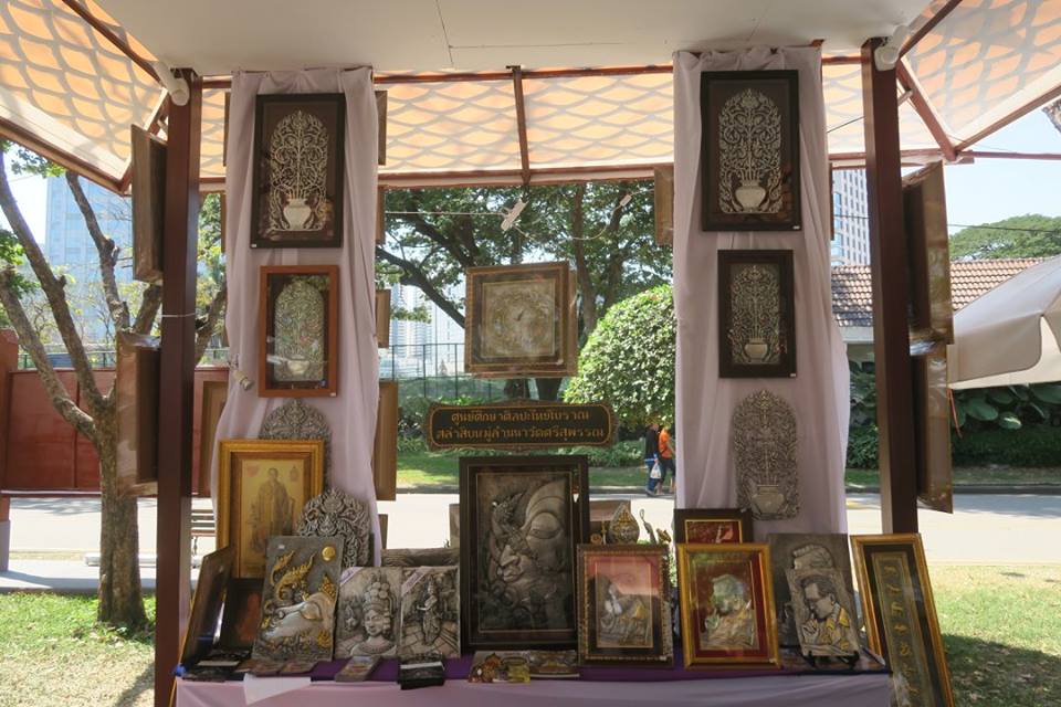 อีกย่านภาคกลางที่อยากแนะนำ คือย่านงานช่างสิบหมู่ ที่มีงานประณีตศิลป์ของไทยหลายอย่างที่หาดูได้ยาก แถมยังอาจเป็นเจ้าของได้ด้วยตามแต่ประเภท ชนิด ขนาด และกำลังกระเป๋า ผ้าลายอย่างจากเมืองเพชรก็อยู่ในย่านนี้ ที่หน้าเวทีภาคกลางครับ
