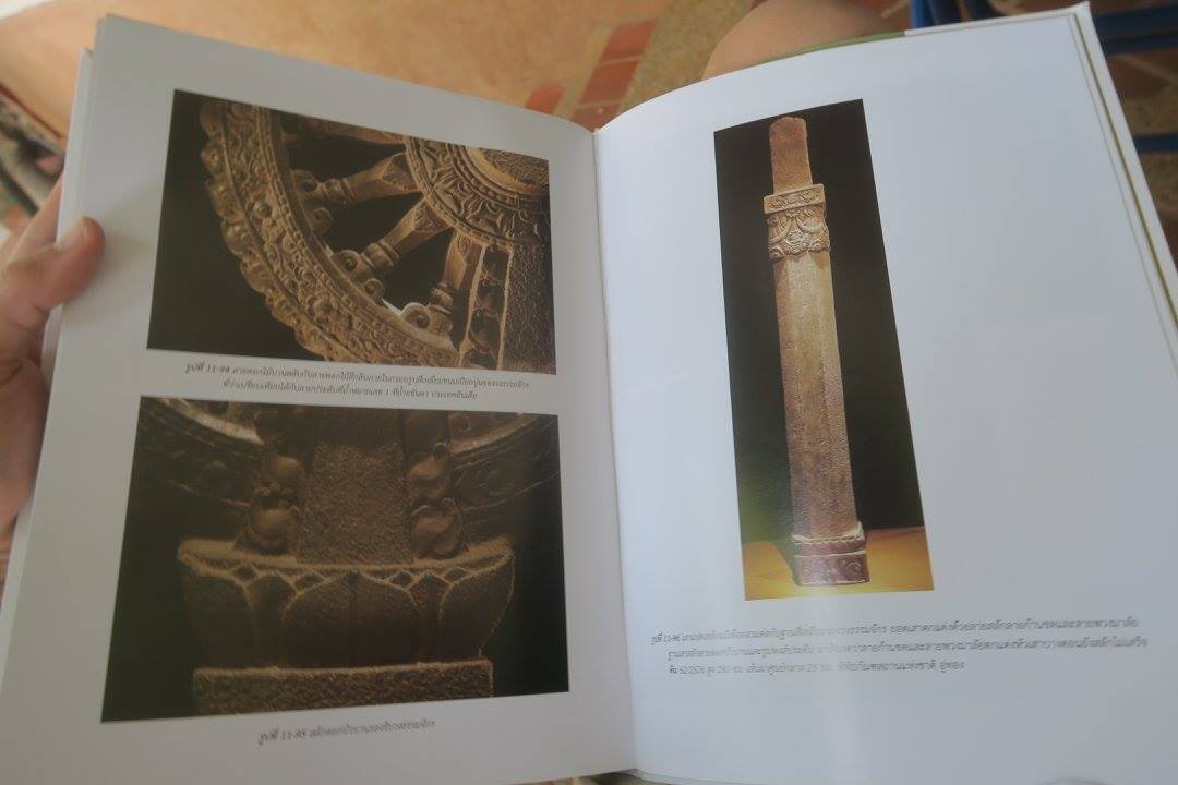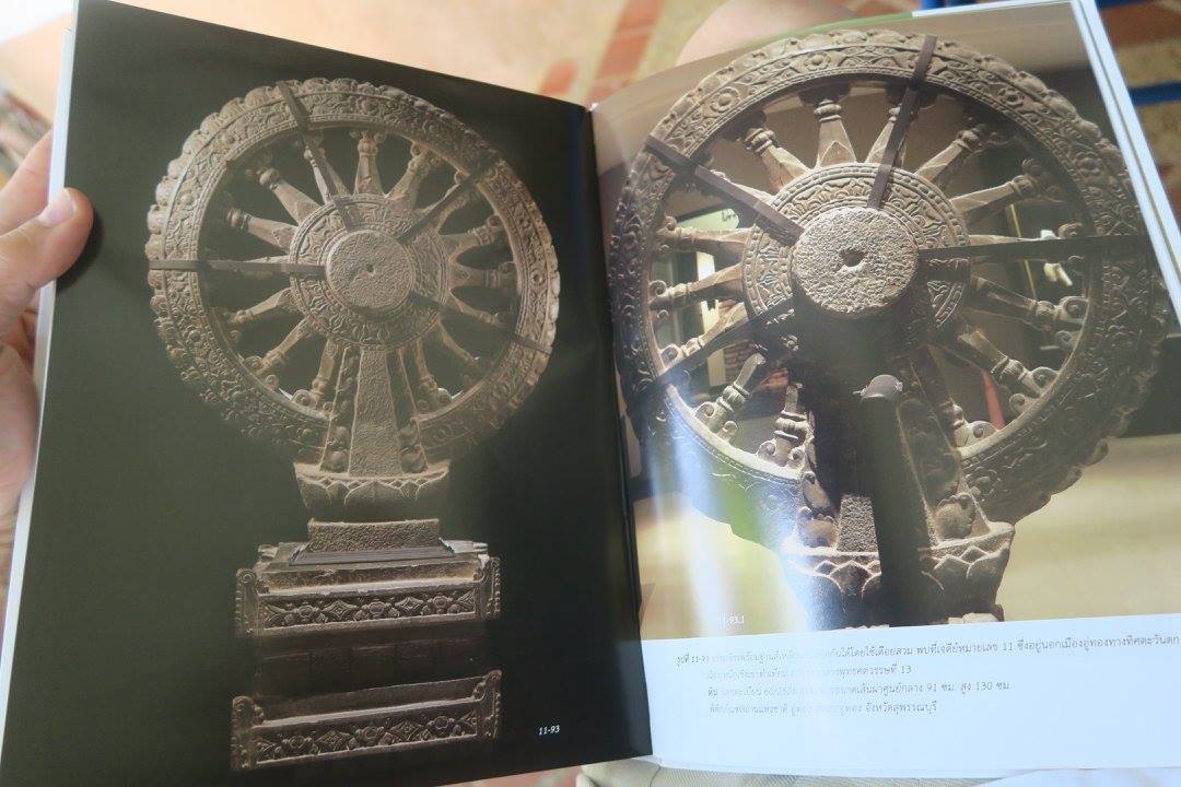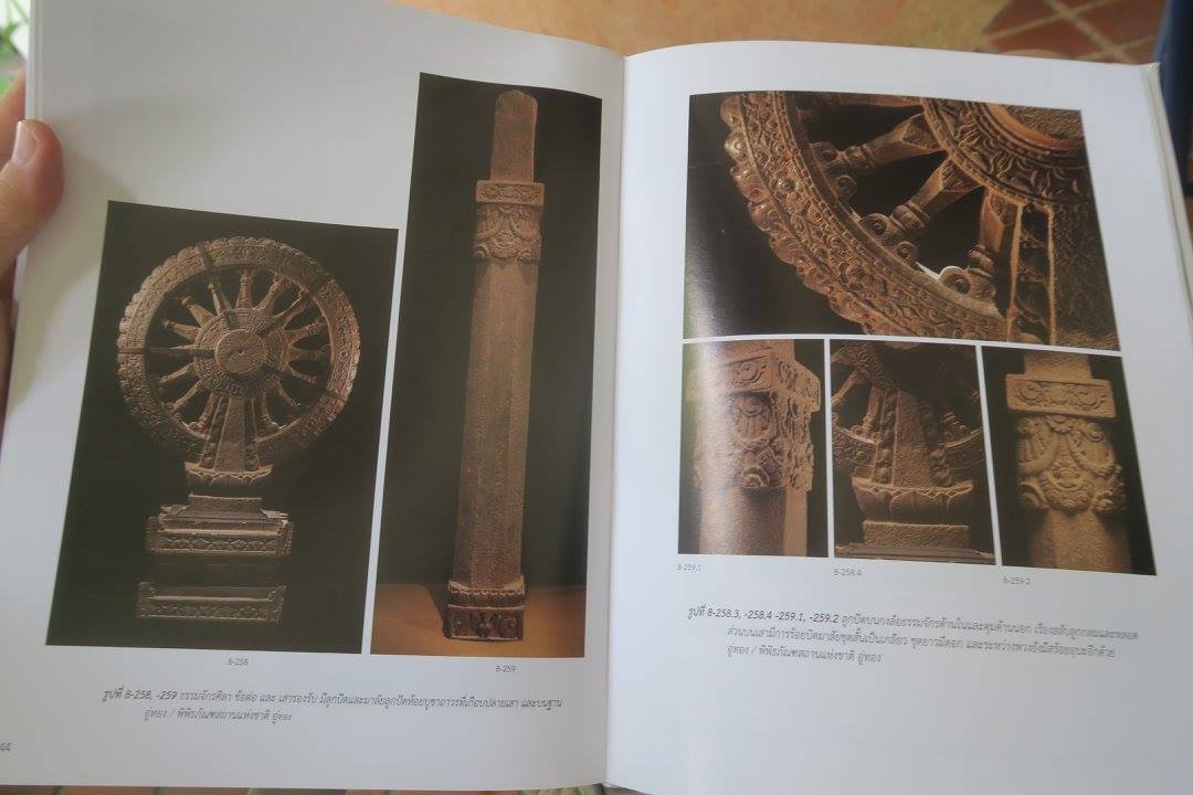 ๑) ภาพนี้ เป็นหัวเสาประดิษฐานธรรมจักรองค์สำคัญที่สุดของประเทศไทย พบที่โบราณสถานหมายเลข ๑๑ นอกเมืองโบราณอู่ทองทางทิศตะวันตก ไม่ไกลจากเขาธรรมเธียร และ ที่กำลังแกะพระใหญ่สุวรรณภูมิปุษยคีรี
