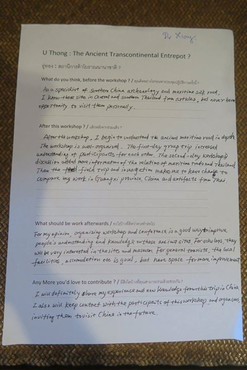 แต่จากหลักฐานโบราณคดีต่าง ๆ ที่ได้พบเห็นตลอดระยะที่มานี้ชี้ชัดว่าเป็นอย่างอื่นไปไม่ได้ แล้วเขาก็บอกว่า เมื่อลองทบทวนถึงที่เมืองจีนเองในสมัยฮั่นโน้น ก็ไม่ได้มีเมืองท่าอยู่ที่ริมทะเลเลยสักแห่งเดียว ล้วนอยู่ลึกเข้าไปบนสายน้ำทั้งนั้น อาจจะด้วยหลายเหตุ เช่น ลมแรง พายุจัด ท่าไม่ปลอดภัยได้ เรือยังไม่ใหญ่พอ คนยังไม่ตั้งถิ่นฐานถึงทะเล ฯลฯ