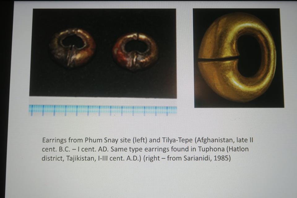 นักวิชาการกว่าครึ่งที่มาร่วมในงานนี้ ก็ด้วยการประสานชวนให้ของพ่อเซอร์เจย์คนนี้ ในขณะที่ข้อเสนอของเขาเองนั้นกลับอ่อน ๆ เพราะนอกจากนำผลการขุดค้นที่ภูมิสนายใกล้ชายแดนไทยที่สระแก้วแล้วก็ไปสนใจสิ่งเก็บรักษาในกรุของสุธีรัตนามูลนิธิ ซึ่งไม่ตรงประเด็นอู่ทอง แต่ก็ได้เผยให้พบว่า มีสุริยเทพอีก ๔ เม็ด เหมือนกับกลุ่มที่พบที่คลองท่อม แต่พวงนี้ เป็นของได้จากการขุดค้นทางโบราณคดีที่ตอนเหนือของประเทศเตอร์กเมนิสถานเมื่อนานมากแล้วในสมัยยังอยู่ในสหภาพรัสเซีย ระบุอายุประมาณ ๓ ศตวรรษ ก่อน ค.ศ. ถึง ค.ศ.๓๐๐ ตอนนี้อยู่ในคลังของเตอร์กเมนิสถาน กำลังจะทำการศึกษาต่อ ต้องรอดูผล แต่ถือเป็นการต่อภาพลูกปัดสุริยเทพคลองท่อมได้อีกหน่อย จากอีกเม็ดที่เจอในสุสานกลางทะเลทรายตากลามะกันที่หยินปัง-Yinpan