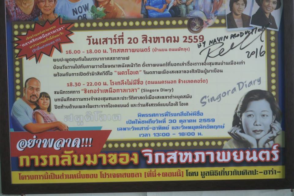 นอกจากนี้ยังมีป้ายชวนดูหนังโบราณ ชุด ซิงกอร่าเหนือกาลเวลา ที่วิกสหภาพยนต์ ว่า นครโอเค OK NAKORN