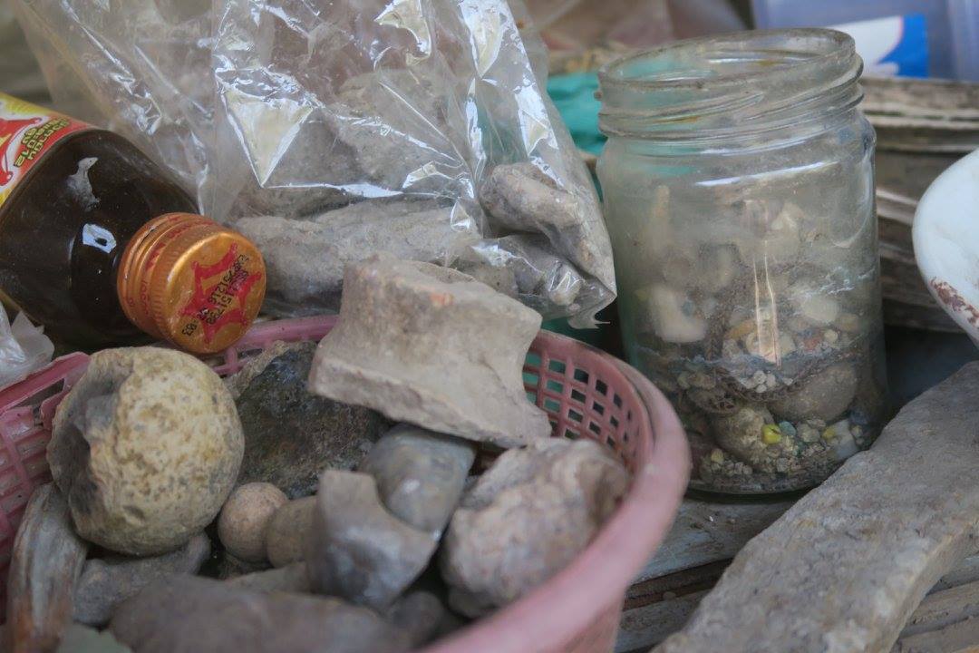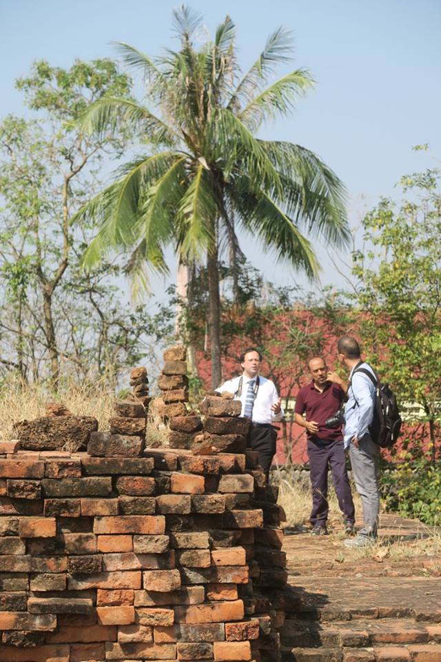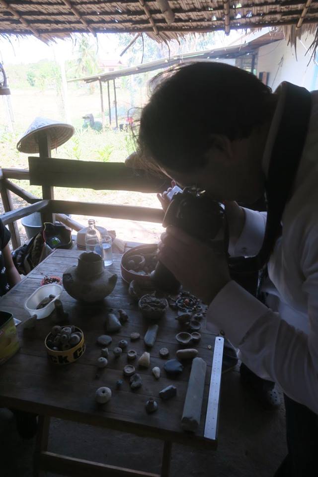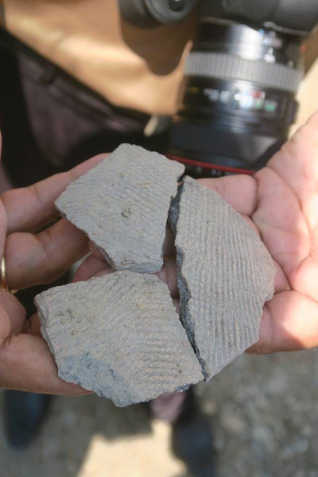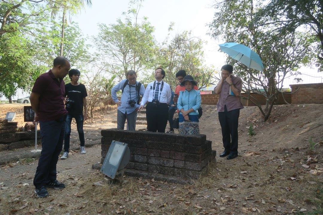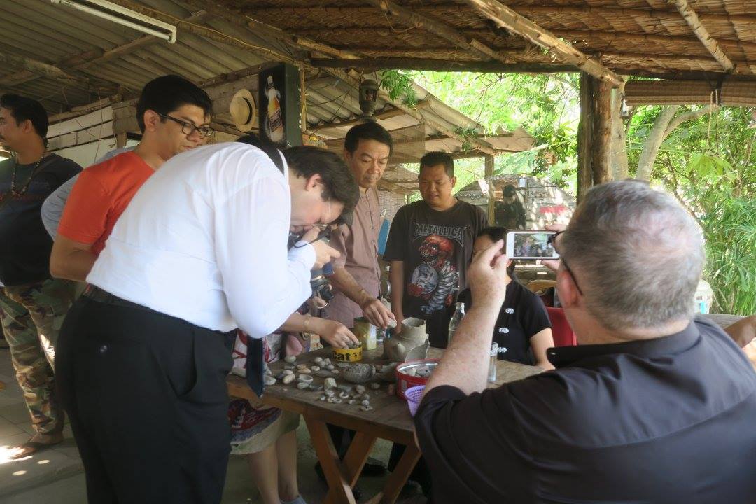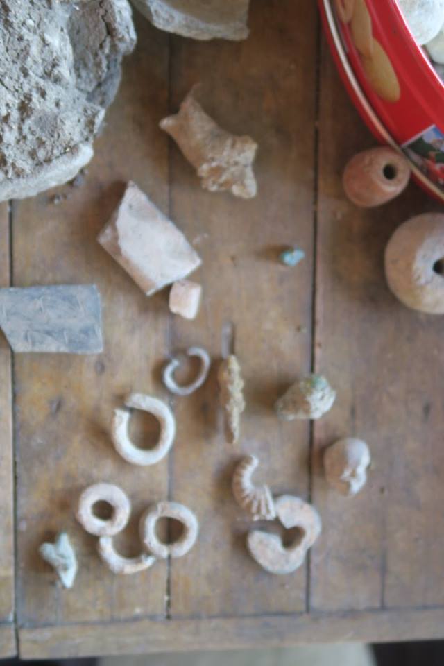 จากนั้นจึงผ่านไปที่ด้านหน้าวัดทางตอนเหนือนิดหนึ่ง เจอรอยการขุดหาสิ่งของกันขนาดนี้ แถมที่บ้านข้าง ๆ ก็มีข้าวของทั้งที่ทิ้งและเก็บกันไว้อย่างที่เห็น ทำเอาเหล่านักวิชาการโบราณคดีทั้งหลายแตกตื่นกับเศษภาชนะกระเบื้องทั้งหลายว่านี่นั่นนู่น จนกระทั่ว่าคล้าย NBPW เข้าด้วย ส่วนกุณฑีปากสั้นนั้นยิ่งน่าตกใจใหญ่ (หากผมฟังไม่ผิด) เพราะ ดร.อโลก บอกว่าแบบนี้เท่าที่รู้ มีการศึกษาว่าแต่โบราณใช้สำหรับล้างในห้องน้ำเข้าไปนั่น ในขณะที่หลายคนเสียดายแทน ดร.ลิน ที่กลับไปก่อน จึงไม่ได้เห็นอีกตะเกียงอย่างโรมันดวงเบ้อเริ่ม ส่วน อ.ปีเตอร์บอกว่า อยากไปให้ถึงสถานที่พบแผ่นงานช้างจารึก "อปรมาท" จึงพากันไปต่อที่อีกฟากของเมืองโบราณ