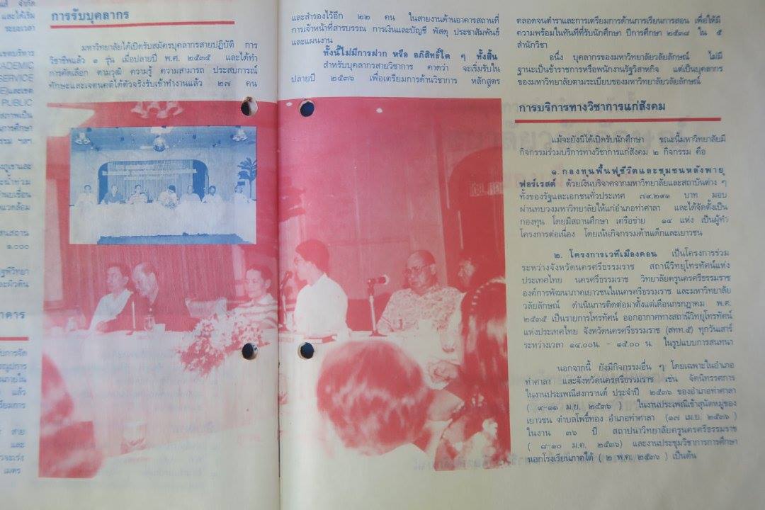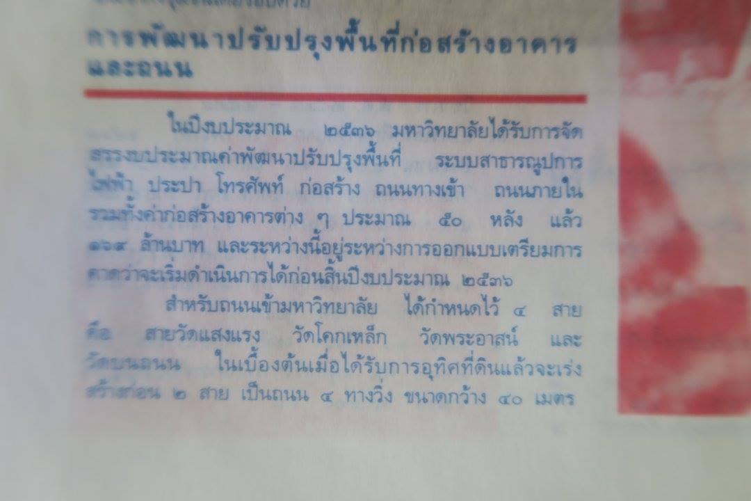 ในรายงาน ๑ ปีนั้น พวกเราให้ความสำคัญกับการสร้างมหาวิทยาลัยไว้ท้ายสุด หลังการจัดตั้งชุมชนใหม่ที่ สปก.มารับดำเนินรายการ อบจ.ขนกำลังเต็มอัตรามาพัฒนนำร่อง หลังการวางระบบกฏเกณฑ์ โดยมีแกนนำชุมชนชาวบ้านมากมายมาร่วมด้วยช่วยกัน อาทิ พี่ดำ(รง) เอียดเหตุ พี่จารุ ทองยอด น้า(ส้ม)แป้น เกตุโรจน์ โดย อบจ.บอกว่าทำได้แต่ถนนกับไถที่ให้แล้วก็ขนย้ายข้าวของ สปก.ก็แค่รังวัดจัดสรรให้รายละแปลง ๆ ละ ๕ ไร่ นอกนั้นต้องมหาวิทยาลัย ชาวบ้านบอกว่าอยากได้โรงเรียน อนามัยแล้วก็วัด อาจารย์วิจิตรว่าต้องเป็นเรื่องของทางจังหวัด สปจ.บอกว่าพร้อมจัดหาครูมาหากมีอาคารแล้วค่อยตั้งงบสร้างโรงเรียน สสอ.บอกว่าหากผู้ใหญ่ทางกระทรวงตกลงก็จะตั้งอนามัยให้ ส่วนวัดจะเอาอย่างไรดี