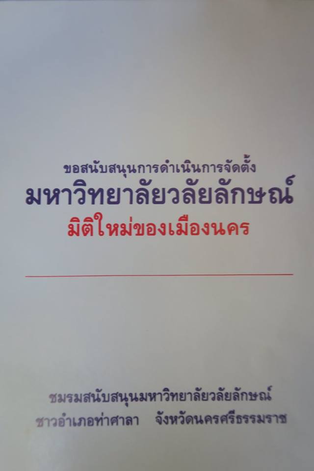 อีกอย่างหนึ่ง เอกสารนี้ ชมรมสนับสนุน มวล.ที่โกเฉี้ยวเป็นประธาน ขอออกตังค์พิมพ์เอง เพื่อแจกจ่ายให้กว้างขวางให้คนท่าศาลาได้รับรู้และมีส่วนร่วม จึงปรากฏปกหลังอย่างนี้